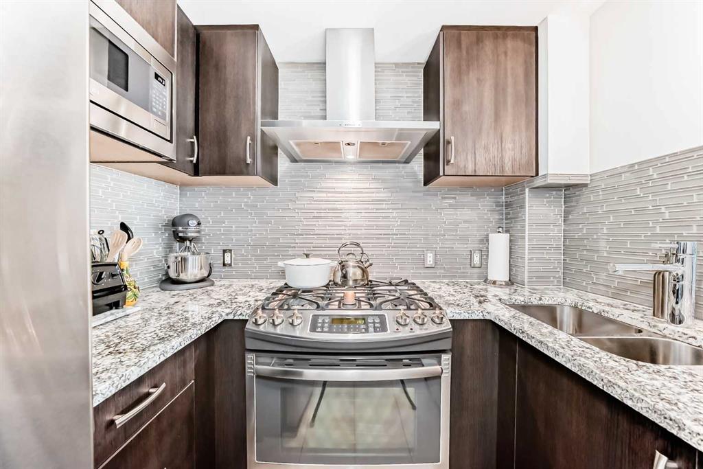 Welcome to this beautifully appointed 2-bedroom, 2-bathroom condo in The Park, offering breathtaking west-facing views overlooking Central Memorial Park. With large windows throughout, this home is filled with natural light and showcases stunning sunsets year-round. The thoughtfully designed layout features tile flooring throughout. The upgraded kitchen is a standout, complete with stainless steel appliances, a gas range, sleek cabinetry, and ample counter space — perfect for both everyday living and entertaining. The spacious primary bedroom includes a private ensuite, while the second bedroom and full bath provide flexibility for guests, a home office, or roommates. Enjoy urban living at its finest with panoramic park views, contemporary finishes, and an unbeatable location just steps from green space, dining, and downtown amenities. A rare opportunity to own in one of the city’s most desirable buildings — don’t miss it!