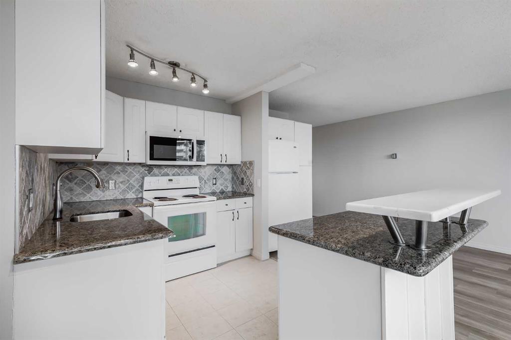 Welcome to elevated living in the heart of Eau Claire. This bright and beautifully maintained CORNER UNIT offers exceptional space, functionality, and modern comfort in one of Calgary’s most desirable downtown communities. Featuring 2 bedrooms and 1 bathroom, this thoughtfully designed home showcases an open-concept layout filled with natural light thanks to its corner positioning and expansive windows. Recent updates include vinyl flooring, fresh paint throughout, and a brand-new dishwasher and mounted microwave, creating a fresh, move-in-ready feel. The modern kitchen is both stylish and practical, complete with granite countertops, an eat-up bar, and ample cabinetry - perfect for everyday living or entertaining. A true standout feature is the oversized walk-in pantry, offering storage space rarely found even in most detached homes. Enjoy the convenience of in-suite laundry and the comfort of heated underground parking, ideally located close to the parkade entrance and elevator for effortless daily access. Even better, all utilities are included in the condo fee, allowing for simplified monthly budgeting and exceptional overall value. Prince’s Crossing is a well-managed concrete high-rise offering an impressive range of amenities, including a fully equipped fitness centre complete with steam room, lockers, showers, concierge service, 24-hour security, daycare located within the building, and an on-site convenience store . Located just steps from the Bow River pathways, parks, restaurants, and everything downtown Calgary has to offer, this home offers the perfect blend of urban vibrancy and natural beauty. Spacious, updated, and exceptionally well located - this one truly checks all the boxes. Book your private showing today.
