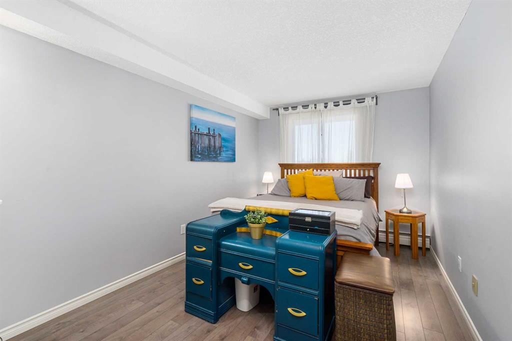 Big on space, big on lifestyle, and refreshingly removed from the downtown rush (while remaining conveniently central) - this 758 sq ft one-bedroom offers something many inner-city condos don't: room to actually live. In a market full of compact one-bedrooms, this floorplan offers generous proportions that can accomodate full-sized (not fun-sized) furniture, truly setting it apart. The layout feels open and intentional, anchored by a massive kitchen island that naturally becomes the centre of the home in this unique and modern kitchen. Sleek white surfaces that look stunning and contemporary give the whole home a polished and bright feel, while ample cupboard space and large storage closets allow for condo living to be organized, rather than the chaos of living with a single kitchen drawer. Lastly, a private balcony that is spacious enough for a bbq AND comfortable seating is just begging for summer weather to be fully enjoyed. This condo building also stands out from the market, with an elevator, only 6 floors (no need to battle 20 other floors for said elevator), concrete build (think about the privacy without the noise transfer!), secure indoor parking, and an incredible rooftop patio with skyline views! If that wasn't enough, the neighbourhood is bursting with parks, pathways, courts for several different sports, a skating rink, multiple dog parks and even a community garden just steps away for those who love condo living but also have a green thumb. Well-connected by transit and bikepaths, you'll have no problem getting around while living here, plus there's plenty of street parking if you prefer to drive. You'll also be steps away from shopping, the C-Train, groceries, trendy restaurants, cozy coffee shops, yoga studios and more, so exploring your own neighbourhood will never get old. For buyers who want inner-city energy without inner-city intensity (and who also value square footage, parking, and thoughtful updates), this condo quietly stands apart. Come take a look for yourself!