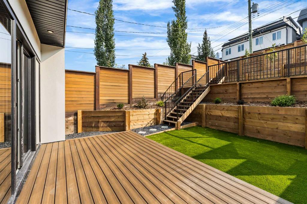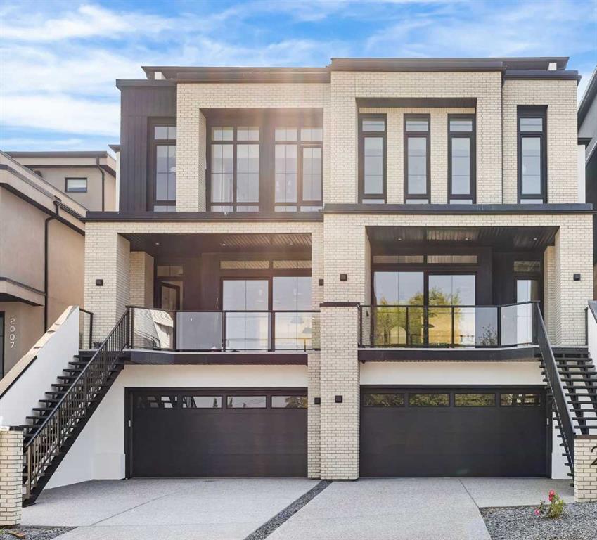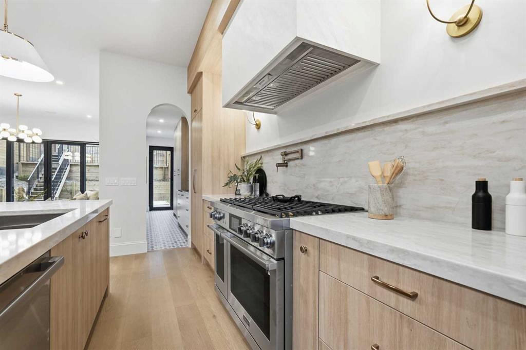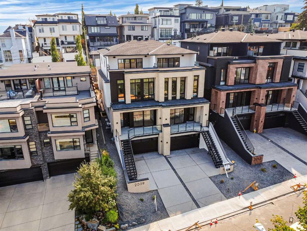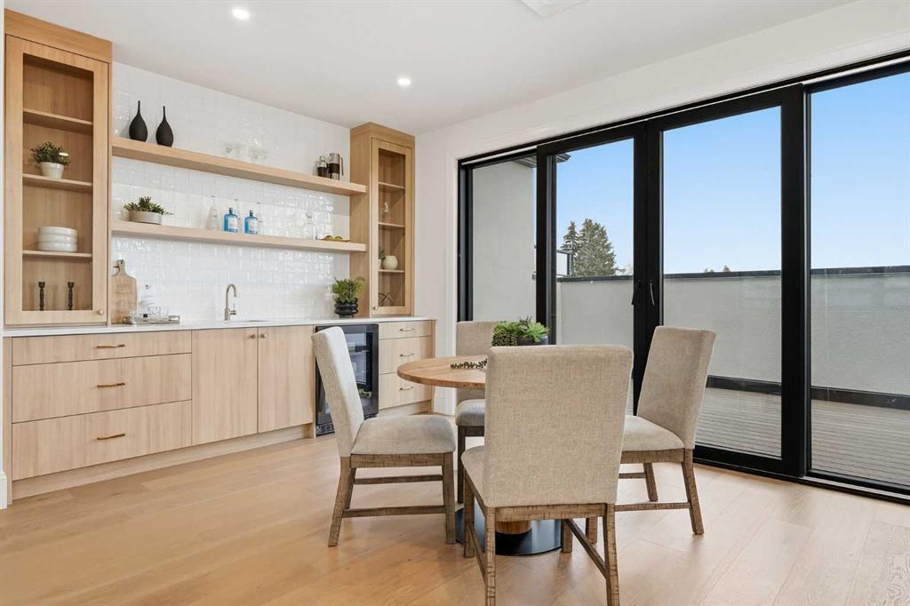 Experience quiet luxury at its finest in this stunning three-storey home, set on one of the highest points in Calgary with uninterrupted skyline views from all levels, and steps from Marda Loop. The exterior makes a striking first impression with its blend of classic white brick detailing, black accents, and timeless stucco. The curb appeal is enhanced by clean glass railings, low-maintenance landscaping, and a welcoming front balcony. Step into a beautiful and functional foyer, complete with custom built-in millwork, a bench, and smart storage including hanging compartments, open shelving, and pull-out drawers. The open-concept design includes a dedicated dining area surrounded by massive sliding doors that lead to the balcony. This is styled for intimate dinners, elevated entertaining, or just enjoying a coffee with stunning skyline views. At the heart of the home, the chef’s kitchen is a true masterpiece. It features a 14-foot island with quartz from Hanstone (made in Canada), a quartz backsplash, plaster textured hood fan, pot filler, and oversized premium appliances including a 48” dual oven gas range and a 66” built-in fridge/freezer. There is a butler’s pantry with sink and cabinetry, mud room, coffee bar, and tons of storage including under the island. The kitchen is set up to be not only beautiful but also functional and includes a garbage drawer, bar cooler, and spice racks/cabinetry. Across from it, the living room centers around a beautiful fireplace and custom built-ins which make it cozy, refined, and made for real living. Large doors lead to the deck and the sunny south facing backyard, that is tiered, turfed and truly low maintenance. Throughout the home, you’ll enjoy tons of natural sunlight from the large windows, 10-foot high ceilings, arched transitions, and wide-plank engineered hardwood create a warm and elevated flow. Upstairs, the primary suite is a serene retreat with a spa-like ensuite featuring a steam shower, dual vanity, custom tilework, and skyline views. Secondary bedrooms are generously sized, each with walk-in closets, and connected by a stylish bathroom ideal for kids or guests. The third level includes a beautiful rooftop patio where you can soak in the skyline views, a stylish bathroom with nice finishes, a rec/living area with built-in storage and a gas fireplace. There is a large wet bar with LED lighting in the cabinetry, beatiful tile, shelves and bar fridge. This is the ultimate entertaining area to host friends and family. The fully finished basement extends the living space with heated floors roughed-in, a large flex room or guest suite, and full bathroom. Additional features include a heated double attached garage with epoxy flooring, integrated speakers and security system, central A/C, roughed-in heated driveway. Whether you're enjoying a quiet morning in the sun, hosting friends on the rooftop, or watching the city light up at night, this home was built for a lifestyle that’s elevated and timeless.