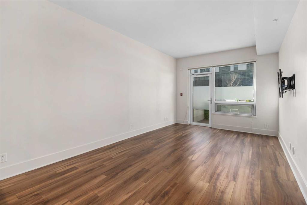 This ground floor freshly painted unit with a fantastic layout includes a must have DEN, unique upgrades, titled parking and convenient storage. The original owners had the builder add a built in pantry/cabinet at end of the kitchen as well as additional shelving in ensuite. The very convenient ground floor access means no elevators and visitors can come directly through the private patio. The unit comes with one title parking stall in the secured underground parking where you will find secure storage for your convenience rather than hauling items through the elevators and hallways. A previous occupant also had security set up on patio for comfort and peace of mind. The bedroom features a walkthrough closet leading to the well appointed 4 piece bath with some custom shelving. With the DEN. the open floor plan, well appointed kitchen, full size washer/dryer and the direct access for your guests this is an amazing opportunity. Bridgeland is known to be one of the best inner city communities in Calgary, This unit sits in one of the best locations within Bridgeland being far enough from Memorial to minimize traffic noise and close enough for an easy walk to the LRT, Zoo, river paths, downtown and several coffee shops and restaurants and shops. Vacant and available for possession at your convenience.