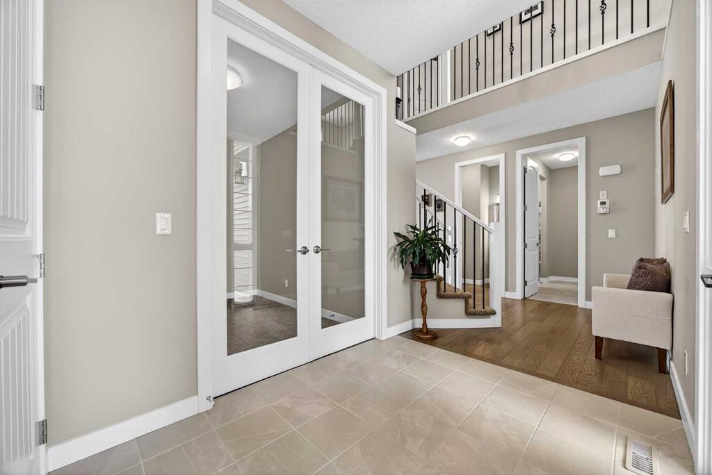 Welcome to the best value in Sunset Ridge! As you step into this beautiful home, you’re welcomed by gleaming hardwood floors and an abundance of natural light. The open-concept floor plan is perfect for entertaining and extends seamlessly to an east-facing balcony and a fenced, irrigated backyard that backs onto expansive green space—offering the privacy of no rear neighbours. The main floor features a private den with glass French doors, ideal for working from home. The chef-inspired kitchen showcases a large island with quartz countertops and bar seating, a stainless steel French-door refrigerator, and built-in microwave and oven. Extended cabinetry into the dining area provides exceptional storage, while the convenient walkthrough pantry connects the mudroom directly to the kitchen. The inviting living room features a cozy gas-burning fireplace, and a two-piece powder room completes the main level. Up the elegant curved staircase with wrought-iron spindles, is the primary bedroom This retreat offers a luxurious five-piece ensuite with dual sinks and a stand-alone soaker tub, along with a walk-through closet that leads directly to the laundry room for ultimate convenience. Two additional bedrooms, a generous bonus room and a four-piece bathroom complete the upper floor. The fully finished walkout basement is designed for entertaining, featuring two additional bedrooms, a four-piece bathroom, and beautiful views of the backyard and surrounding green space. Additional highlights include a double attached garage and central air conditioning. Ideally situated close to schools, parks, scenic walking trails, and shopping, this exceptional home combines comfort, style, and an unbeatable location.