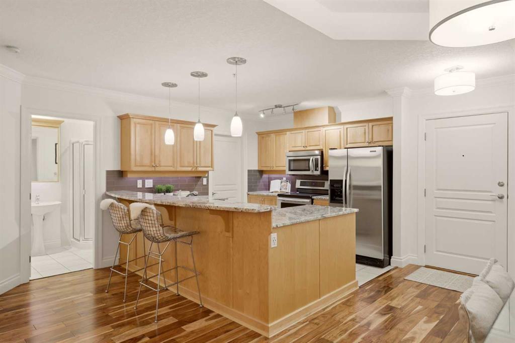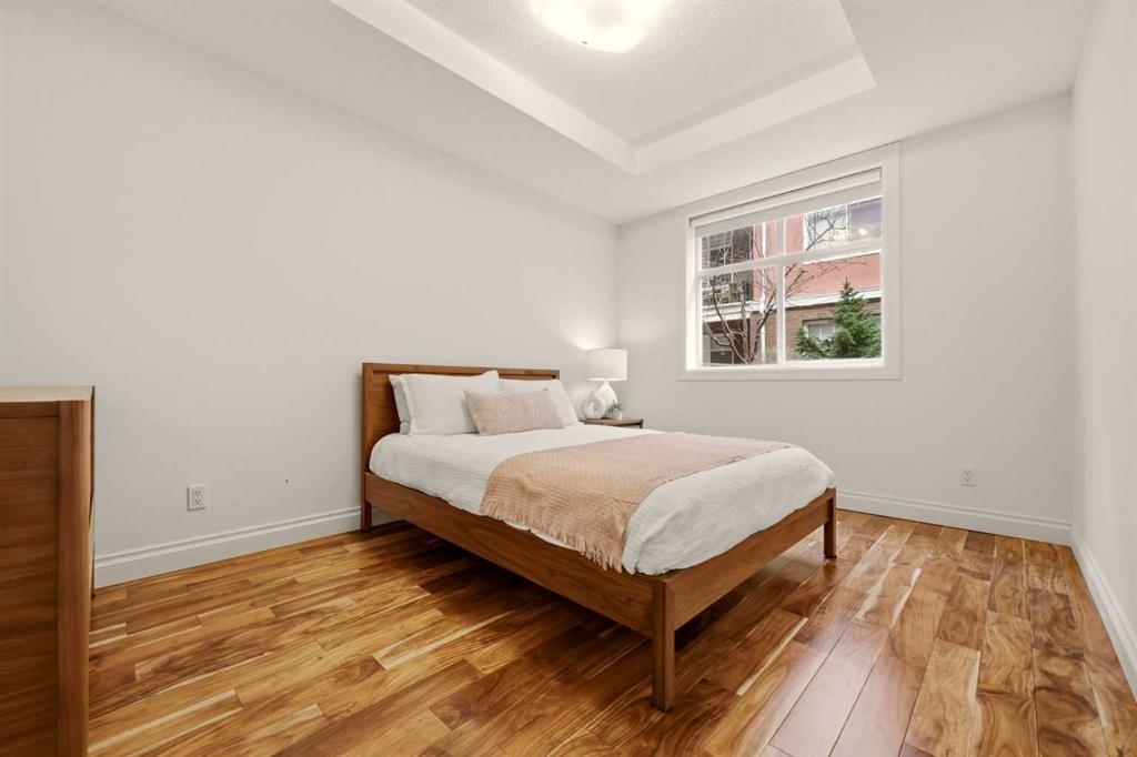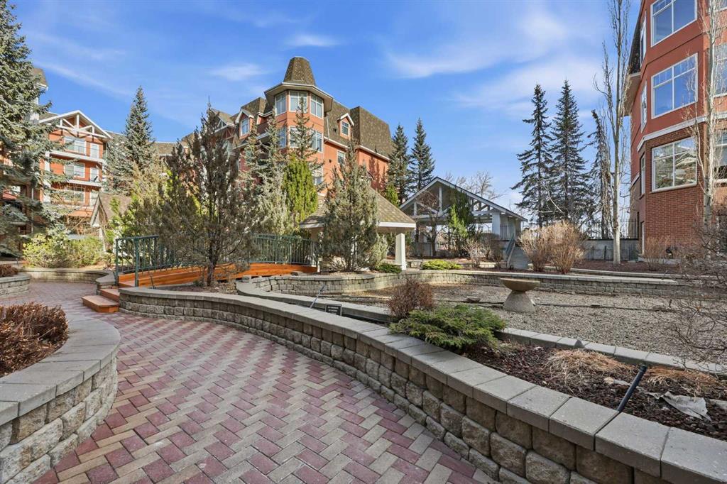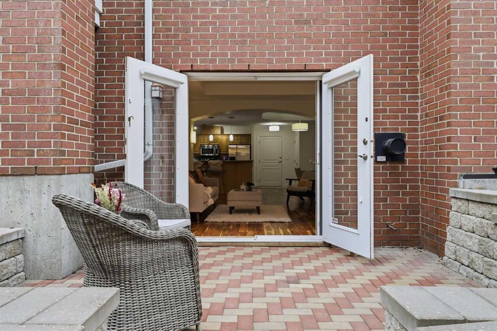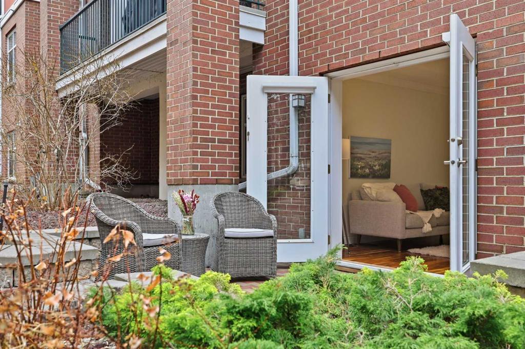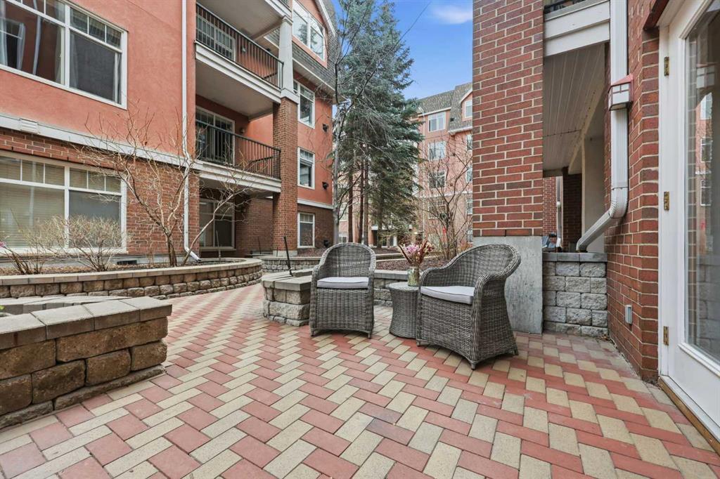 Effortless Elegance in Erlton. For those ready to simplify without compromise, this beautifully appointed two-bedroom residence in Erlton offers a rare balance of sophistication, serenity, and walkable urban living. Just steps from the river pathways along the Elbow River and moments from the restaurants and cafés of Mission, the setting feels both connected and quietly removed. Inside, the home reveals a calming palette and enduring finishes designed for comfort and ease. Solid concrete construction ensures remarkable quiet — an invaluable luxury for professionals who work from home or value true relaxation at day’s end. In-floor heating provides consistent warmth beneath rich hardwood flooring, while the gas fireplace creates an inviting focal point for intimate evenings or relaxed entertaining. The kitchen is as functional as it is welcoming, with granite countertops, an expansive breakfast bar for casual gatherings, and a separate dining area suited to everything from weeknight dinners to hosting close friends. The layout flows naturally, offering just the right amount of space — never overwhelming, always intentional. Positioned on the main floor, the residence offers seamless access to a private patio — ideal for morning coffee, container gardening, or simply enjoying fresh air without the upkeep of a larger property. It’s a lifestyle shift that prioritizes freedom: lock-and-leave convenience for travel, and manageable elegance for everyday living. Beyond the suite, a private access landscaped courtyard centered around a tranquil pond and fountain creates a peaceful backdrop. Residents enjoy thoughtfully arranged seating areas, welcoming meeting spaces, and a refined snooker lounge — amenities that foster community while maintaining privacy. Pet-friendly (with board approval), allowing cats and dogs under 30 lbs, making it an ideal option for those seeking a refined home that accommodates both lifestyle and companionship. This is living designed for those who value quality over quantity — where riverside walks replace yard work, and evenings out are just steps from home. A graceful next chapter, in one of Calgary’s most charming enclaves.