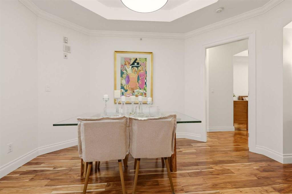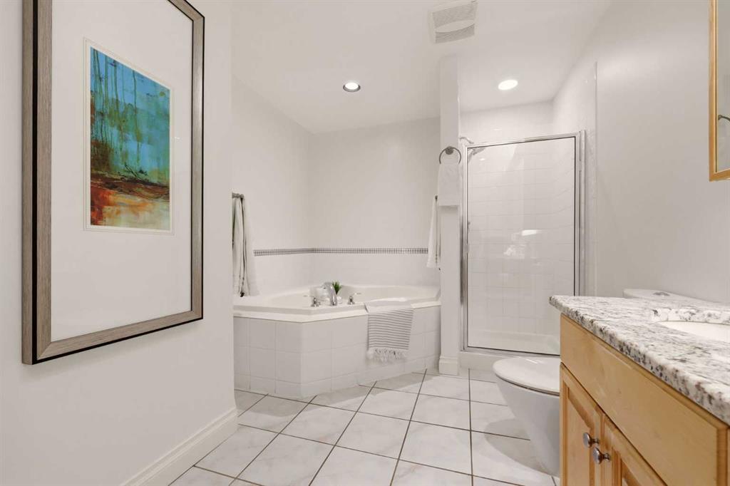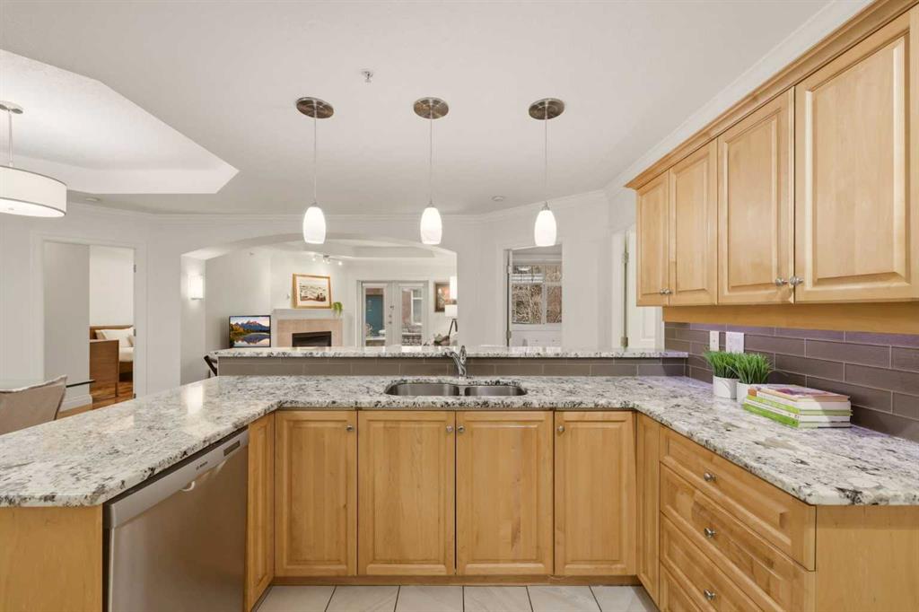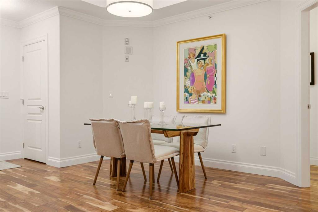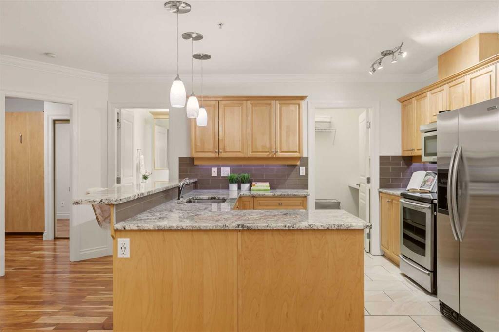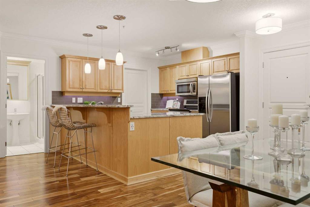 Effortless Elegance in Erlton. For those ready to simplify without compromise, this beautifully appointed two-bedroom residence in Erlton offers a rare balance of sophistication, serenity, and walkable urban living. Just steps from the river pathways along the Elbow River and moments from the restaurants and cafés of Mission, the setting feels both connected and quietly removed. Inside, the home reveals a calming palette and enduring finishes designed for comfort and ease. Solid concrete construction ensures remarkable quiet — an invaluable luxury for professionals who work from home or value true relaxation at day’s end. In-floor heating provides consistent warmth beneath rich hardwood flooring, while the gas fireplace creates an inviting focal point for intimate evenings or relaxed entertaining. The kitchen is as functional as it is welcoming, with granite countertops, an expansive breakfast bar for casual gatherings, and a separate dining area suited to everything from weeknight dinners to hosting close friends. The layout flows naturally, offering just the right amount of space — never overwhelming, always intentional. Positioned on the main floor, the residence offers seamless access to a private patio — ideal for morning coffee, container gardening, or simply enjoying fresh air without the upkeep of a larger property. It’s a lifestyle shift that prioritizes freedom: lock-and-leave convenience for travel, and manageable elegance for everyday living. Beyond the suite, a private access landscaped courtyard centered around a tranquil pond and fountain creates a peaceful backdrop. Residents enjoy thoughtfully arranged seating areas, welcoming meeting spaces, and a refined snooker lounge — amenities that foster community while maintaining privacy. Pet-friendly (with board approval), allowing cats and dogs under 30 lbs, making it an ideal option for those seeking a refined home that accommodates both lifestyle and companionship. This is living designed for those who value quality over quantity — where riverside walks replace yard work, and evenings out are just steps from home. A graceful next chapter, in one of Calgary’s most charming enclaves.