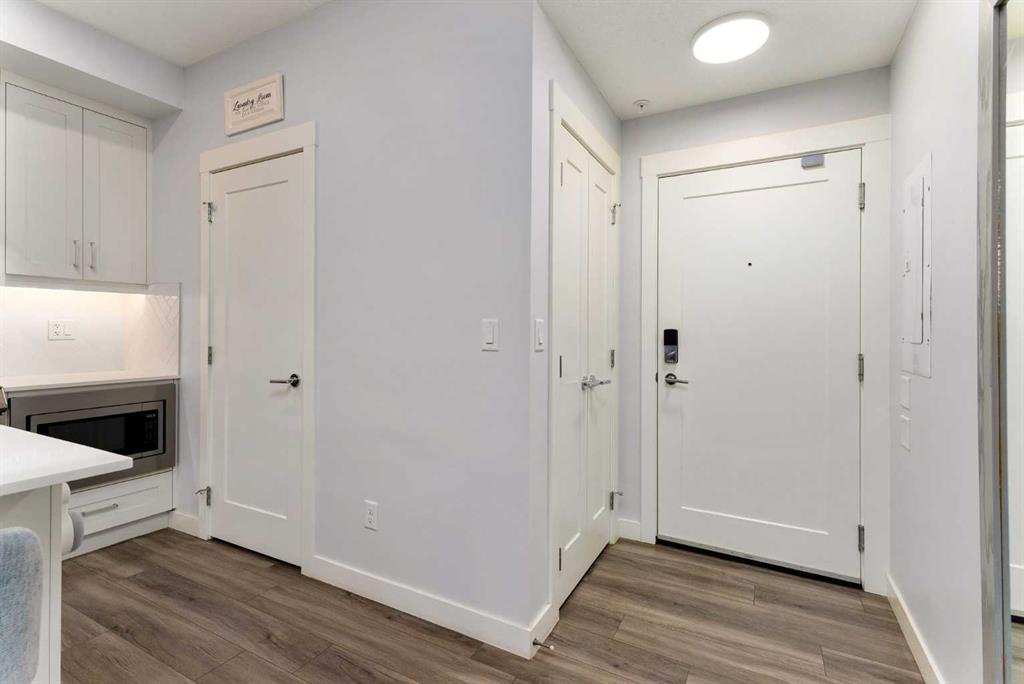 Welcome to this beautifully maintained 2-bedroom, 2-bath condo in the heart of Auburn Bay—a home that truly shows like new. Built in 2021, the original owner invested in thoughtful upgrades throughout, and it has been meticulously cared for from day one. Step inside to an inviting open-concept floor plan that feels bright, airy, and effortlessly functional. The timeless white kitchen is a standout, featuring stainless steel appliances, under-cabinet lighting, stunning herringbone tile detail, and a generous island with a huge undermounted sink and convenient pull-out shelving for optimal storage. Just off the kitchen, the spacious laundry room offers built-in cabinetry—perfect for a coffee bar, extra pantry storage, or everyday organization. The living room features a beautiful custom accent wall and is filled with warmth and natural light thanks to the massive west-facing patio doors that open onto your own ground-level balcony—ideal for enjoying Calgary’s sunny afternoons. The primary bedroom comfortably fits a king-size bed and includes two upgraded closets with extra built-in shelving for optimized storage, along with its own private 3-piece ensuite. The second bedroom is perfect as a home office, guest room, gym, or flexible space to suit your lifestyle, and it conveniently connects to both the main living area and the second 4-piece bathroom. The entire unit has been freshly painted and features central air conditioning, ensuring comfort year-round. The location within the building is unbeatable—just steps from the stairwell leading directly to the heated underground parkade, where your titled parking stall awaits. And of course, living in Auburn Bay means enjoying one of Calgary’s most desirable lake communities. Residents have exclusive access to Auburn Bay Lake, offering year-round recreation such as swimming, paddleboarding, skating, fishing, and vibrant community events. The neighborhood is also home to scenic walking paths, parks, playgrounds, and quick access to shopping, dining, the South Health Campus, and major roadways. Whether you love the outdoors, convenience, or a strong community vibe, Auburn Bay delivers it all. This is the perfect blend of comfort, style, and location—truly a condo you won’t want to miss.
