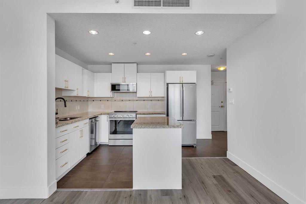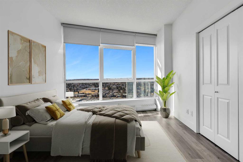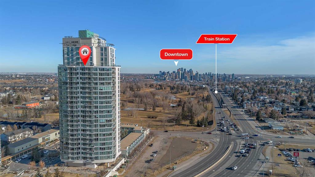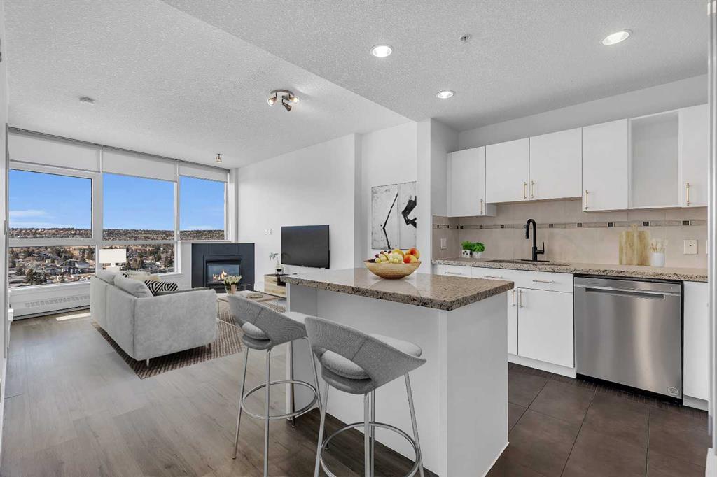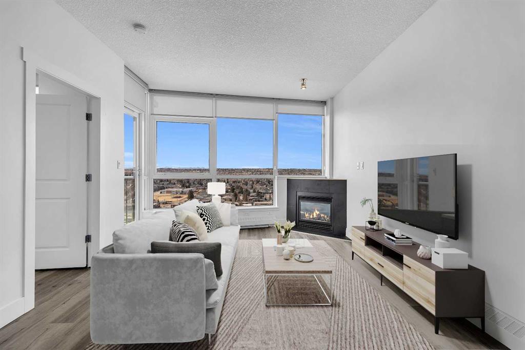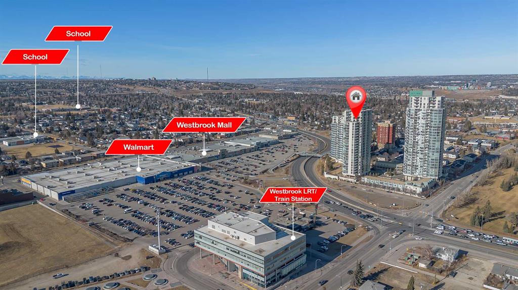 Perched on the 20th floor, this bright and well laid out 2 bedroom, 2 bathroom condo offers the kind of experience that truly sets it apart. Prepare to enjoy mountain views, along with an abundance of natural light pouring in through the bright generous windows. The open concept layout is both practical and inviting, perfect for everyday living and effortless hosting. Step inside to enjoy a home that’s been beautifully renovated. Sleek new LVP flooring spans the living and bedroom areas, refreshed cabinetry with modern hardware brightens the kitchen, and granite countertops paired with updated appliances complete the move-in ready space.The living room features a corner gas fireplace that adds warmth and character, while central air conditioning keeps the space comfortable year round. The bedrooms are thoughtfully positioned, making this layout ideal for professionals, small families, roommates, or those working from home. Step outside to your balcony and take in the open sky and endless views. This well managed complex offers exceptional amenities that add real value to everyday living, including an indoor pool and hot tub, a fully equipped fitness centre, games room, party rooms, on site management, and full time security for peace of mind. The unit also comes with one titled parking stall, assigned storage, and secure visitor parking on the first level of the parkade, offering convenience for both you and your guests. Location truly elevates the experience. The Westbrook LRT station is less than a block away, making commuting downtown simple and quick. Walmart, Safeway, restaurants, and other amenities are directly across the street, giving you true walkable access to daily essentials. If you are looking for comfort, convenience, and incredible views in a prime location, this home checks all the boxes! Welcome Home.