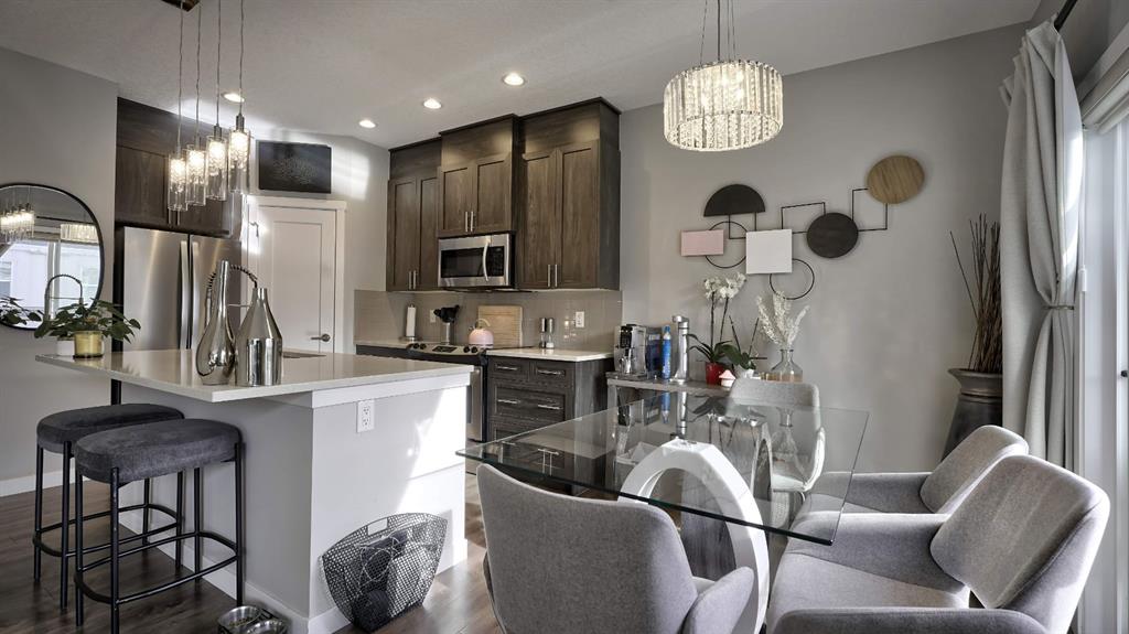 Welcome home to this immaculately kept modern townhome in Nolan Hill. This town home with over 1200 square feet of living space is the perfect blend of comfort and convenience, just minutes away from shops, parks, walking paths and a brand new school! Showcasing 2 bedrooms, 2.5 bathrooms, and a single front attached garage, this property is perfect for professionals, small families, or anyone seeking a comfortable and stylish living space. Walking in you are immediately greeted by the open floorplan, seamlessly connecting the living, dining, and kitchen areas. The kitchen is a chef's dream, featuring a sleek kitchen island and luxurious quartz countertops with plenty of storage in cabinets and the corner pantry. Moving upstairs, the primary bedroom is a true retreat with its automatic window coverings and cozy balcony. The primary bedroom is accompanied by a walkthrough closet with tons of storage and completed with an ensuite bathroom, providing a private oasis for relaxation and rejuvenation. The additional bedroom is spacious and versatile - currently being used as an office but there is plenty of space to make this your own. This bedroom has direct access to another full bathroom showcasing a soaker tub meant for relaxation. Now to focus on the community, Nolan Hill is a highly sought after community that houses any and all amenities that you could need - retail stores, restaurants, child care and so much more. There is a brand new K-9 school being built in the community so this is the perfect space for the family! It also boasts direct access to major routes to leave the city or make your way to down town Calgary. Deerfoot Trail and Stony Trail are right around the corner. Commuting from this area is a breeze! Don't miss out on the opportunity to own this exceptional townhome in Nolan Hill. With its modern features, prime location, spacious living area, and comfortable living spaces, this is the perfect place to call home. Contact me to schedule a showing today!
