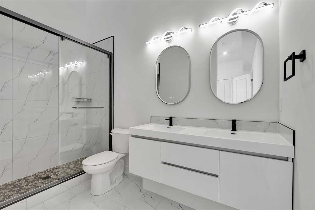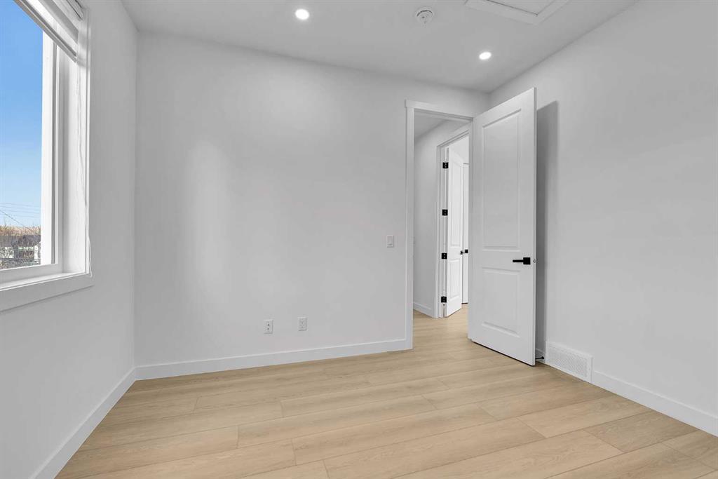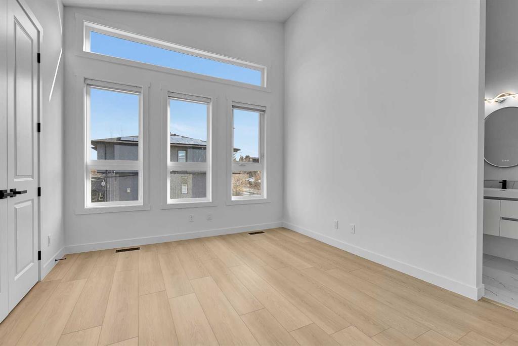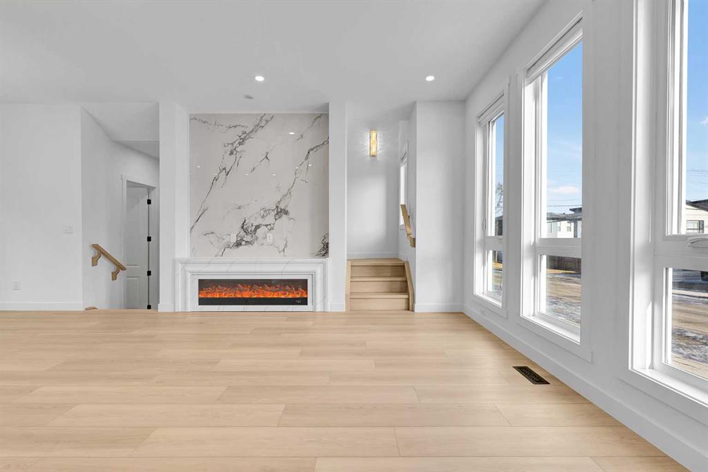 Experience refined inner-city living in this brand new, never-lived-in luxury home in Tuxedo Park, one of Calgary's most desirable inner-city communities. This modern 2-storey offers 3 bedrooms (2+1), 3.5 bathrooms, and 1,131 sq. ft. above grade, plus a fully developed basement — designed for elevated family living and sophisticated entertaining. A single detached garage adds convenience while preserving the charm of the classic inner-city streetscape. The main floor showcases contemporary design with large windows that flood the space with natural light, waterproof luxury vinyl plank flooring, modern lighting, and an open-concept layout tailored for today’s lifestyle. The living room features a sleek electric fireplace, creating a warm and stylish focal point — perfect for Calgary winters. The chef-inspired kitchen highlights quartz countertops, premium stainless steel appliances, custom moisture-resistant cabinetry, and a beautiful eating bar — ideal for gatherings and everyday luxury. Upstairs offers two spacious vaulted bedrooms, each with access to a full bathroom for added privacy and comfort. The upper level also includes a convenient laundry with a steam function for both the washer and dryer. The fully developed basement expands your living space with a third bedroom, a full bathroom, and an elegant family room — perfect for guests or a home office. Enjoy a fully fenced, low-maintenance backyard and a prime location just minutes from downtown, top-rated schools, parks, shopping, transit, and major routes. Book your private showings today!