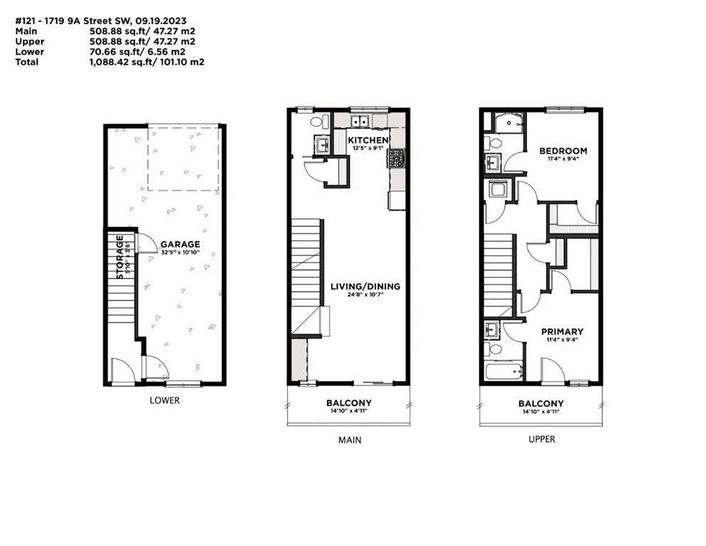 Looking for an outstanding condo that checks all the boxes? Searching for a unique space that stands out from the others you’ve seen? Look no further! Imagine yourself living in the heart of Lower Mount Royal in this truly appealing 2-bedroom, 3-bathrooms, 3-level townhouse in “The Block.” The open-concept floor plan maximizes every square foot, creating a warm and inviting space you'll love coming home to. The stylish kitchen features quartz countertops, custom two-tone cabinets, and upscale stainless-steel appliances. There's also a guest bathroom on this floor. Enjoy DOUBLE PRIMARY SUITES, each with its own luxurious ensuite. Picture stepping out onto a deck on every level, each seamlessly connected to lively communal spaces. Convenient gas hook-up for your BBQ. But wait, there's more! This gem includes an ATTACHED TANDEM GARAGE with extra storage space. Say goodbye to parking hassles, keep your vehicles secure, and enjoy additional storage for your gear. The heart of the building is the central courtyard, where you can connect with neighbors and friends. This unique feature allows you to enjoy the best of both worlds—peaceful privacy in the courtyard and the excitement and convenience of downtown just steps away! Now, let's talk about location — and it simply can't get any better! Stroll to Calgary’s top cafes, shops, and restaurants—all just steps from your door. Built by award-winning Homes By Avi, this rare find combines style, function, and location into one unbeatable package.