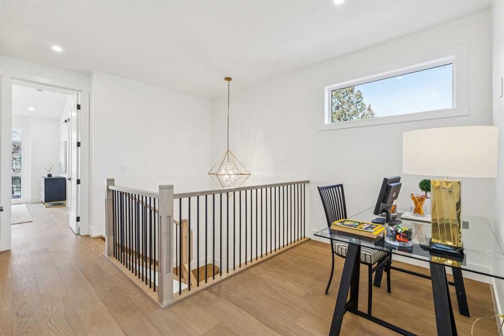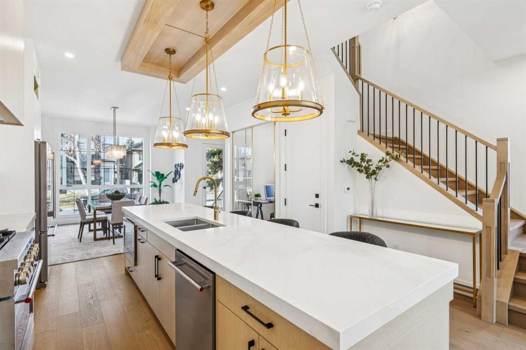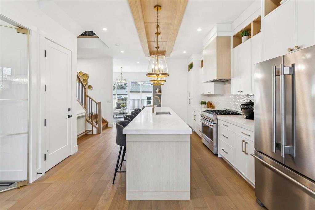 EXTENDED BASEMENT | DESIGNER INNER-CITY INFILL Welcome to a standout new infill in the heart of Killarney, delivering close to 3,000 sq ft of thoughtfully planned living space where modern elegance meets practical everyday living. Located in one of Calgary’s most desirable inner-city communities, this home blends upscale design, a bright open layout, and purposeful functionality. Step inside and you’re greeted by a welcoming formal dining space that effortlessly connects to the heart of the home — a stunning chef-inspired kitchen centred around an impressive 12-foot quartz island. Whether you're enjoying quiet mornings or hosting friends, this space balances sophistication with real-life usability. Positioned across from the kitchen, a sunlit home office provides a flexible space for work, study, or creativity. Toward the back of the home, the warm and inviting living room features a sleek fireplace and large patio doors that lead to the spacious rear deck, extending your living area outdoors for seamless entertaining. The main floor is completed by a built-in mudroom with ample storage and a stylish, discreet powder room. Upstairs, the primary retreat offers an airy feel with a vaulted ceiling, walk-in closet, and a spa-like ensuite showcasing statement flooring, dual vanities, and a beautiful freestanding tub. Two additional bedrooms, a modern main bathroom, and an upper-floor laundry room provide comfort and convenience for the whole household. The lower level features an extended LEGAL BASEMENT SUITE, adding incredible flexibility and value. Bright and spacious, this level includes a full kitchen, open living area, two bedrooms, a flex room, and its own laundry. Ideal for rental income, multi-generational living, or a private guest space, this suite delivers versatility without sacrificing design quality. Outside, the home is finished with a double detached garage and access from a paved rear lane, adding everyday convenience. With refined finishes, a smart and functional floorplan, loads of natural light, and a location just moments from parks, schools, shopping, and quick downtown access, this property offers more than just beautiful design — it’s a lifestyle upgrade and a solid long-term investment.