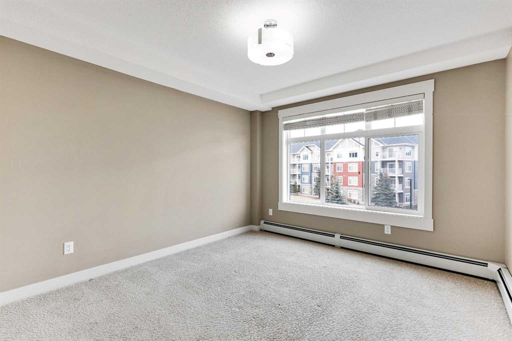 Welcome to easy, low-maintenance living in the heart of Skyview! This spacious third-floor 1-bedroom, 1-bathroom condo offers a functional layout, modern finishes, and excellent value for both first-time buyers and savvy investors. The open-concept design creates a seamless flow between the kitchen and living area, perfect for everyday living or entertaining. The kitchen features stainless steel appliances, sleek stone countertops, and convenient breakfast bar seating. Large windows bring in plenty of natural light, while the living room opens onto a private balcony equipped with a natural gas line for your BBQ — an ideal space to relax and enjoy courtyard views below, along with your titled parking stall. The bedroom includes a walk-in closet, and the unit is complete with a full 4-piece bathroom and in-suite laundry with a full-sized washer and dryer for added comfort and convenience. Enjoy a well-managed building with condo fees that cover Common Area Maintenance, Heat, Maintenance Grounds, Professional Management, Reserve Fund Contributions, Sewer, Snow Removal, Trash, and Water — keeping monthly expenses simple and predictable. Only electricity is paid separately. Located within walking distance to shopping, dining, and everyday amenities, and offering quick access to Deerfoot Trail and Stoney Trail, this is a fantastic opportunity in a growing community. Immediate possession available — don’t miss your chance to make it yours!