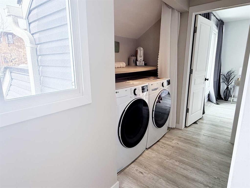 ** CHECK OUT THE VIDEO TOUR ** QUICK POSSESSION AVAILABLE - Welcome to this IMPECCABLY curated TWO bedroom, 1.5 bathroom corner townhouse, two-storey residence that blends thoughtful design with ELEVATED everyday living AND in one of the BEST LOCATIONS in Glamis Green!! Bathed in natural light thanks to its coveted WEST-facing corner positioning, this home has been EXTENSIVELY upgraded with a cohesive, CONTEMPORARY aesthetic that feels both timeless and refined. The kitchen is a true statement piece. Beautiful white shaker cabinetry and luxurious granite countertops, creating a tailored, high-end finish. Striking chrome fixtures provide bold contrast against the neutral palette, while PREMIUM stainless steel appliances - bring both style and performance. New LUXURY vinyl plank flooring flows effortlessly throughout the home, complemented by curated DESIGNER accents throughout. Fresh paint, updated hardware, modern lighting, fabric curtains, and custom feature walls add warmth and architectural interest at every turn. A cozy gas fireplace anchors the main living space, creating an inviting AMBIANCE perfect for intimate evenings or effortless entertaining. Large SUNNY west-facing windows blends indoor and outdoor living with ease. Upstairs, the main bathroom renovation is nothing short of STUNNING - beautifully finished with elevated materials and impeccable craftsmanship. Two generously sized bedrooms offer flexibility for guests, a home office, or growing needs, while the PRIMARY RETREAT enjoys direct access to a private upper balcony - your own quiet retreat for morning coffee or evening unwinding. Convenient upper-level laundry area add practical luxury with BRAND NEW Washer and Dryer. The outdoor space has been thoughtfully designed for low-maintenance enjoyment, featuring a fully decked and fenced patio area that easily accommodates a dining set or lounge seating to ENJOY the warmth of the evening sun. An ATTACHED single garage provides secure parking and additional storage, and the well-managed complex offers peace of mind to home owners. Positioned directly across from a green space and a no-thru road, the setting feels TRANQUIL and private while remaining exceptionally connected. Glenmore, Sarcee, Stoney, and Crowchild Trails are all moments away, placing you just minutes from Westhills Shopping Centre, North Glenmore Park, Mount Royal University, public transit and many more amenities, and only 15 minutes to downtown - making this one of the most DESIRABLE LOCATIONS. Stylish, turnkey, and effortlessly convenient - this is ELEVATED townhouse living in a location that truly delivers. CALL TODAY to BOOK YOUR PRIVATE TOUR!!