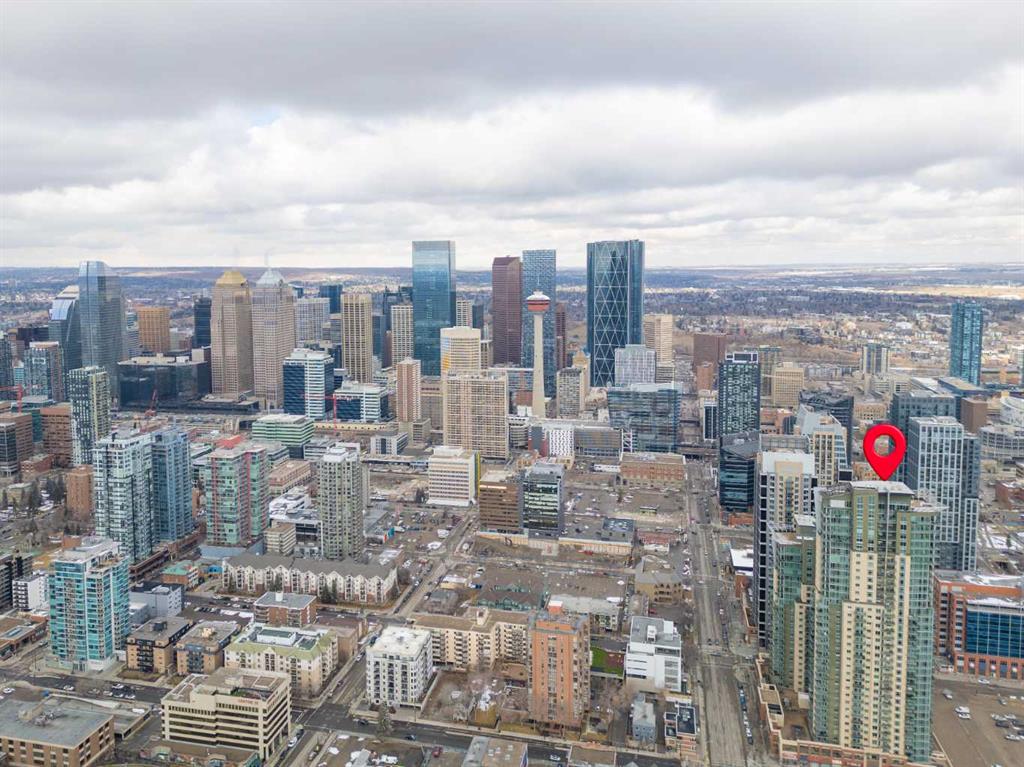 Welcome to elevated urban living on the 18th floor of Vetro, where refined design meets an unbeatable inner-city location just steps from the Stampede Grounds. This executive 18+ residence is perfectly tailored for the professional seeking both convenience and a polished, low-maintenance lifestyle. From the moment you enter, the open-concept layout creates an immediate sense of space and flow, anchored by a seamless transition between the kitchen, dining, and living areas. Expansive windows frame stunning city views while drawing in natural light, enhancing the clean, modern aesthetic throughout. The living space extends effortlessly onto a private balcony complete with a gas line for BBQing—ideal for unwinding above the energy of the city. The interior has been thoughtfully upgraded with no carpet throughout, featuring durable and stylish luxury vinyl plank flooring that delivers both a contemporary look and everyday practicality. The kitchen is designed to impress with rich espresso cabinetry, sleek black appliances, and a functional breakfast bar that creates a natural gathering point for entertaining or casual dining. The spacious primary bedroom offers a true retreat, complete with a walk-through closet and a well-appointed ensuite, combining comfort with smart design. Ownership includes a titled underground parking stall, assigned storage locker, and access to secure bike storage—ensuring every element of convenience is covered. Vetro is known for its exceptional amenity package, including a fully equipped fitness centre, hot tub, steam rooms, private theatre, and games/billiards room—bringing a luxury, hotel-style experience right to your doorstep. The location is where this home truly separates itself: immediate access to the C-Train, a short walk to downtown, and steps to the Stampede Grounds place you at the centre of Calgary’s most vibrant events and everyday conveniences. Main floor commercial retail, including a pharmacy, adds an extra layer of practicality for day-to-day living. This is an opportunity to own a sophisticated, lock-and-leave residence in one of Calgary’s most connected and dynamic urban communities.