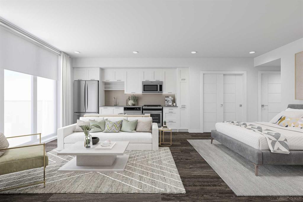 Built by Homes by Avi, this beautifully designed studio suite with the Coco floorplan offers modern living in the heart of Calgary’s vibrant Culture and Entertainment District. Steps from the Calgary Stampede, BMO Centre, Scotiabank Saddledome, and the restaurants and nightlife of 17th Avenue, this location delivers exceptional walkability and urban convenience. Nestled within the sought after community of Mission, you’re also moments from boutique shops, acclaimed dining such as Mercato and Añejo, and the world class MNP Community & Sport Centre. Inside, the condo features premium finishes and thoughtful design throughout. A kitchen island/eating bar with white quartz countertops is complemented by sleek white cabinetry, chrome faucets and hardware, and full size stainless steel appliances. Floor to ceiling windows and durable luxury vinyl plank flooring create a bright, contemporary atmosphere. The bedroom area, a 4 piece bath, large closet/storage space & discreet in suite laundry room complete this studio suite. Included roller shade window coverings add everyday convenience. Concrete construction provides lasting durability, while central air conditioning ensures year round comfort. Additional highlights include an assigned storage locker. From this location, you’ll love being able to walk to everything — from Mission’s cafés and shops to the energy of 17th Avenue. Enjoy the Bow River Pathway just minutes away or spend the day exploring the CORE Shopping Centre with more than 120 retailers, including Holt Renfrew. Whether training at the MNP Community & Sport Centre or meeting friends at local favorites like Ship & Anchor or Model Milk, this is urban living at its finest.