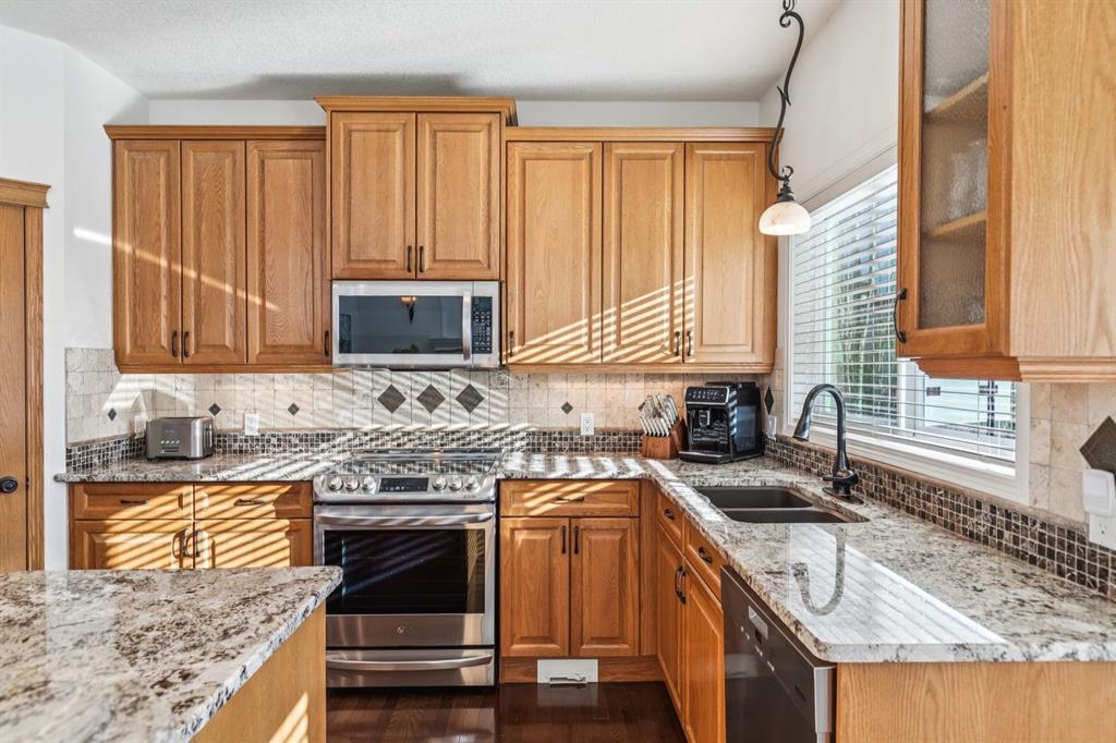 Prepare to be captivated by this stunning home that blends timeless elegance with quality craftsmanship in the sought-after Evercreek Bluffs community. Arriving here feels like a true escape from the city while still being minutes from the natural beauty of Fish Creek Provincial Park. This prestigious location offers the perfect balance of peaceful surroundings and convenient city living. Meticulously maintained, this home offers over 2,270 sqft above grade plus a fully developed walkout basement, totalling 3,600 sqft including 5 bedrooms and 3.5 bathrooms. Thoughtful updates and functional design elevate the traditional floor plan into a modern family home. Expansive south-facing windows (majority recently upgraded to triple-pane) and soaring vaulted ceilings fill the home with abundant natural light. The formal living room sits to the left of the front entrance and flows seamlessly into the formal dining area, ideal for entertaining. At the back of the home lies the true heart of the space: warm and inviting family room featuring a cozy gas fireplace, bright dining nook, and well-appointed kitchen complete with an oversized island, granite countertops, quality oak cabinetry, and stainless steel appliances. Step outside to the south-facing deck, perfect for hosting family and friends or enjoying quiet evenings beneath the pergola. The main floor is completed by a versatile bedroom/office, powder room and functional mudroom. Upstairs, the spacious primary retreat includes a cozy sitting area - perfect for relaxing with a favourite book - along with a spa-inspired ensuite featuring dual sinks, soaker tub, separate shower, and private water closet. The walk-in closet includes extensive built-in organizers. Two additional bedrooms are located on the opposite side of the upper level with 4-piece bathroom between the rooms. The walkout basement features in-floor heating within the concrete slab and offers an oversized rec room ideal for movie nights and games, an additional bedroom, gym/hobby room, and a beautifully designed laundry space. Car enthusiasts and families alike will appreciate the oversized triple garage (accommodates larger vehicles too), complete with epoxy flooring, abundant storage cabinetry, and gas heater (2024). Recent mechanical and exterior upgrades include: rebuilt composite deck, acrylic stucco paint, triple-pane windows. Situated on a large corner lot without the burden of extra sidewalks, the property offers ample outdoor space for family enjoyment. Located in desirable Evergreen Estates with nature just steps away, enjoy year-round outdoor activities including cycling, walking trails, wildlife sightings, and even the occasional northern lights display. An exceptional opportunity to move into a truly family-focused community and a place you’ll be proud to call home.