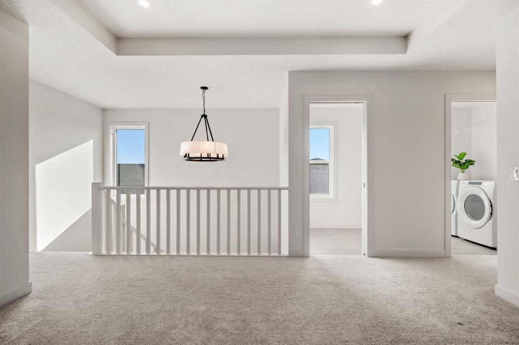 Welcome to The Sydney by Calbridge Homes, a stunning two-storey home perfectly situated on a corner lot in the highly desirable community of Sage Hill. Thoughtfully designed with modern finishes and an open-concept layout, this home offers the perfect blend of style, space, and comfort for today’s families. As you enter, you’re greeted by a grand foyer with an open-to-below design, creating a sense of elegance and openness right from the start. The gourmet kitchen is a true showpiece, featuring a large island, two-tone cabinetry accented with gold hardware, a beautiful designer backsplash, and quartz countertops. A walk-through pantry connects conveniently to the mudroom, providing easy access to the garage and additional storage. The main floor flows seamlessly from the kitchen to the spacious dining and living areas, ideal for entertaining and family gatherings. Large windows flood the space with natural light, while the dining area leads out to a huge deck overlooking the expansive backyard, perfect for summer barbecues, outdoor dining, and play. Completing the main level is a stylish two-piece bathroom. Upstairs, you’ll find a massive bonus room, perfect for movie nights or a cozy family retreat. The primary suite offers a luxurious escape, complete with a walk-in closet and a five-piece ensuite featuring dual sinks, a soaking tub, and a glass-enclosed shower. Two additional generous-sized bedrooms share a beautifully appointed four-piece bathroom with a dual vanity, ensuring comfort and convenience for family or guests. A laundry room and a flex space—perfect for a home office or study nook—complete this thoughtfully designed upper level. The unfinished basement includes a separate side entrance and rough-ins for a future suite, offering excellent potential for added living space or an income-generating rental. "A secondary suite would be subject to approval and permitting by the city/municipality." The property also features additional rear parking for future basement tenants. For your peace of mind, a radon mitigation system has already been installed. Located in the thriving community of Sage Hill, this home provides quick access to a wealth of amenities, including Sage Hill Crossing, Beacon Hill Shopping Centre, and numerous cafés, restaurants, and fitness facilities. Residents enjoy scenic walking paths, parks, and natural wetlands, making it a perfect setting for active families and nature lovers. With easy access to Stoney Trail and Shaganappi Trail, commuting anywhere in the city is effortless. This exceptional home stands out for its corner lot position, beautiful curb appeal, and expansive backyard, offering ample space for outdoor enjoyment. With its modern finishes, gourmet kitchen, open-concept design, and potential for future basement development, 152 Sage Hill Heights NW delivers both luxury and long-term value. Experience the perfect balance of sophistication, functionality, and community living—welcome home to The Sydney in Sage Hill.