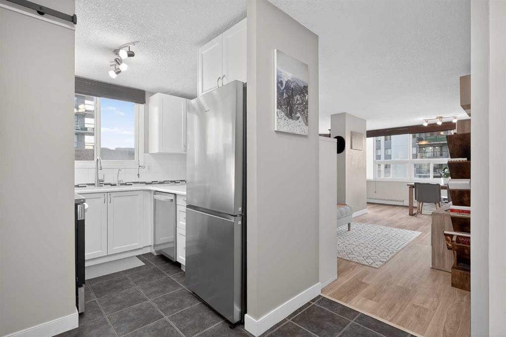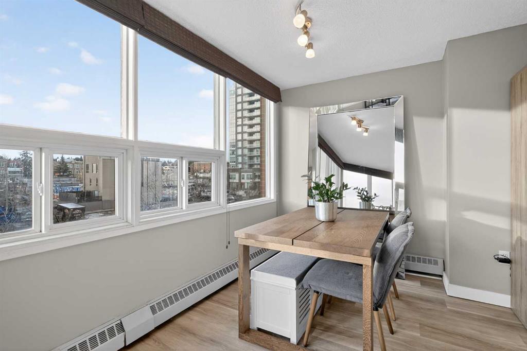 **OPEN HOUSE SUN MAR 22nd 2PM - 4PM** Welcome to this EXTENSIVELY RENOVATED 2 Bedroom + Den condo, offering a refined blend of comfort, style, and urban convenience. Nestled on a quiet, tree-lined avenue just two blocks from vibrant 17TH AVENUE this SE corner unit enjoys additional windows and an abundance of natural light throughout the day. The interior showcases NEWER wide-plank flooring, in-suite laundry, and the added convenience of an assigned UNDERGROUND PARKING stall. The kitchen has been FULLY RENOVATED within the past 2 years, featuring updated cabinetry, generous counter space with an extended breakfast bar, and ALL-NEW stainless steel appliances, including a NEW washer/dryer. A rare kitchen window enhances both light and functionality, an uncommon luxury in condo living. The kitchen flows seamlessly into the spacious living room, making it ideal for entertaining. Adjacent to the dining area, the open-concept DEN provides an excellent work-from-home studio or creative art space, offering flexibility to suit your lifestyle. Both bedrooms are well-proportioned, and the FULL BATHROOM HAS BEEN UPDATED with a new vanity and toilet, adding to the home’s move-in-ready appeal. Residents also enjoy access to a ROOFTOP PATIO with sweeping views of Calgary’s ever-changing skyline, perfect for hosting gatherings, grilling, or simply unwinding. This home offers the unique advantage of being steps from a vibrant social scene while still providing a peaceful, private retreat. Pet Policy: Maximum of two domestic cats or dogs, each not exceeding 15 kg when fully grown.