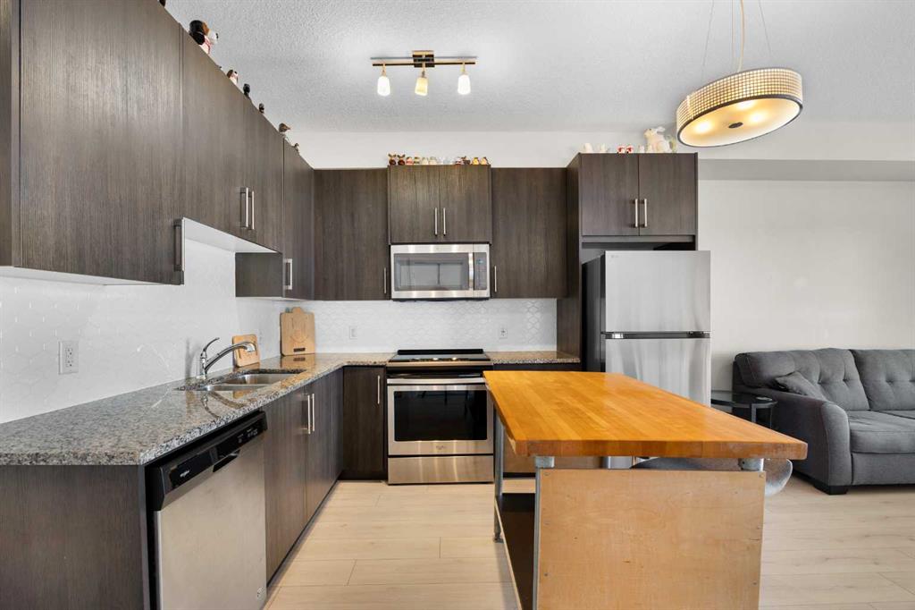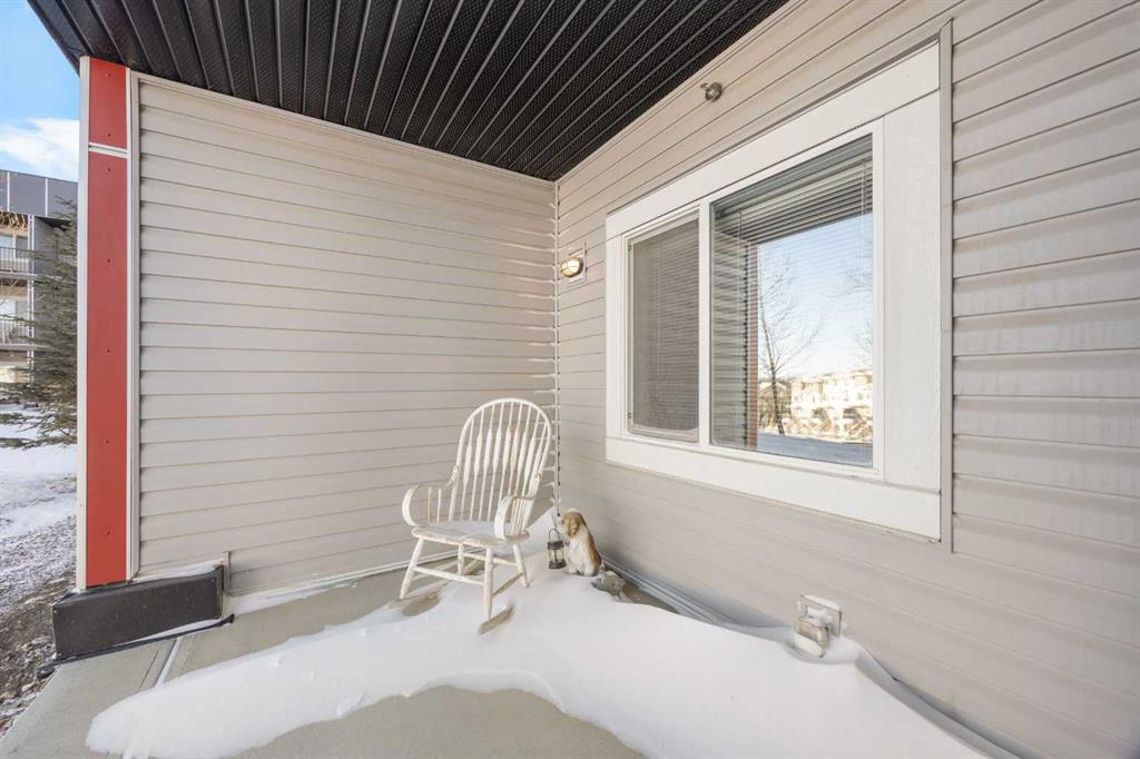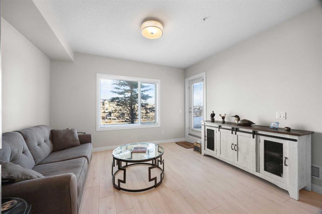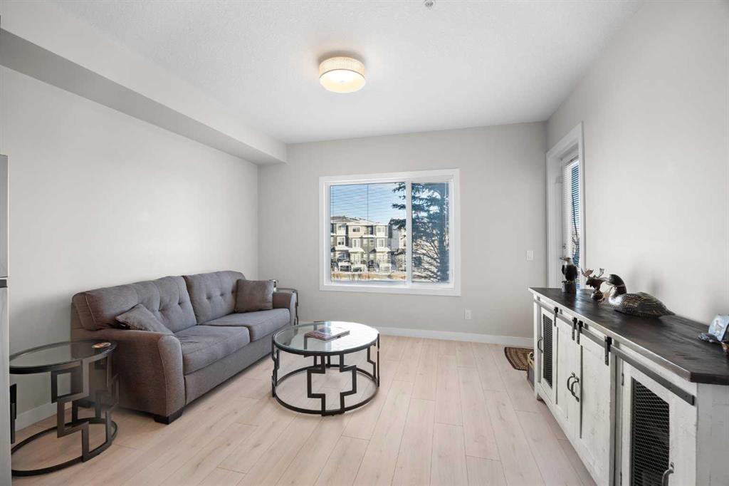 Welcome to this well-appointed apartment in the desirable community of Sage Hill, offering 1 Bedroom + Den, 1 Bath, and 573 sq ft of comfortable living space with the added luxury of in-floor heating throughout. Step inside and be greeted by impressive 9-foot ceilings and beautiful vinyl plank flooring. The open-concept floorplan features a bright North-East facing Living Room that flows seamlessly into the Kitchen. The well-appointed Kitchen boasts granite countertops and stainless steel appliances, including a brand new fridge purchased in 2025. The Primary Bedroom provides a peaceful retreat with a walk-in closet and a 4pc Bath featuring granite countertops, while the good-sized Den with extra storage makes an ideal Home Office or flex space. In-suite stacked Washer and Dryer add everyday convenience. Step outside to your private walk-out Patio, perfect for enjoying morning coffee or relaxing in the fresh air — with direct access to the scenic walking path for morning strolls or evening walks. This unit also includes underground heated titled parking and visitor parking at the front of the building. Located in Sage Hill, just steps to walking paths beside the pond and close to Walmart, T&T Supermarket, shopping centres, and restaurants, with easy access to Stoney Trail for quick commutes across the city. Move right in and enjoy comfortable living in Sage Hill!