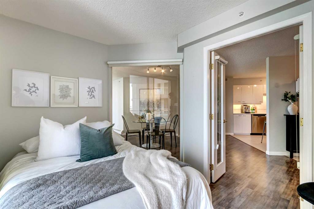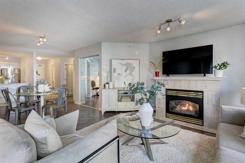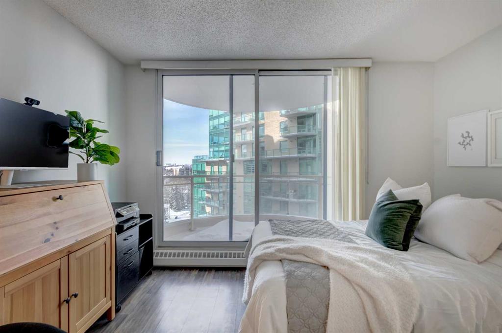 Experience the ultimate fusion of elegance, modernity, and riverside allure at Liberte Eau Claire. Situated in the vibrant heart of downtown Calgary, this exceptional 1,178 sq. ft. sanctuary offers a lifestyle defined by sophistication and seamless convenience. Just a stone’s throw from the enchanting Bow River pathway system and the lush greenery of Prince’s Island Park, this residence invites you to discover a perfect harmony between metropolitan energy and natural tranquility. As you step inside this expansive three-bedroom, two-bathroom gem, you are greeted by an abundance of natural light dancing through generous windows, casting an inviting glow across the open-concept design. The interior is unified by beautiful laminate flooring that is as durable as it is stylish, leading you toward a living room anchored by a cozy gas fireplace—the perfect centerpiece for chilly evenings. Your culinary dreams come to life in the gourmet kitchen, where stunning granite countertops and chic, glossy white cabinetry are beautifully complemented by sleek stainless-steel appliances. A half-island breakfast bar extends the workspace, connecting effortlessly to the dining and lounging areas for a layout that is both functional and social. The thoughtful floor plan positions the bedrooms on opposite sides of the suite, ensuring maximum privacy for residents and guests alike. For those working from home or seeking a quiet retreat, the office/bedroom features elegant French doors, allowing it to double as a sophisticated den. Perhaps the most breathtaking feature of this home is the inclusion of two private balconies, with direct access from both the living room and the office/bedroom. From these elevated vantage points, you can savor "peek-a-boo" views of the shimmering Bow River and the iconic Peace Bridge, offering a serene backdrop for your morning coffee or evening glass of wine. Life at Liberte Eau Claire extends far beyond the four walls of your suite. This pet-friendly building caters to an active lifestyle with a premium array of amenities, including a tennis court, basketball court and well-equipped fitness room. For social gatherings, the convenient party room with a full kitchen is ready to host your next celebration. Practicality is never an afterthought, as the property includes titled underground parking and a secure storage locker. Anticipate the future with excitement as the forthcoming Green Line LRT hub positions itself just steps away, while the inner core offers fantastic, shopping, dining and entertaining options. At Liberte Eau Claire, you aren't just buying a condo; you are securing an urban oasis where every detail is tuned to a symphony of perfection, so book your Showing today!