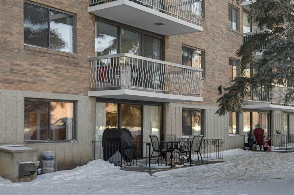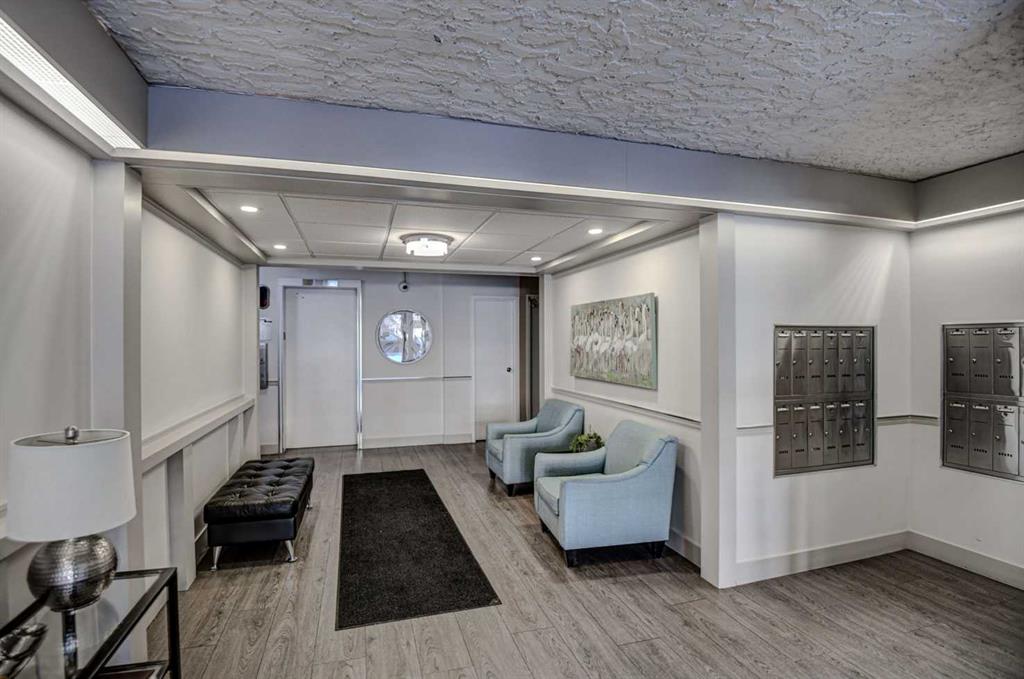 Quiet, 40+ age restricted living can be yours in Chinook Manor, a well-managed and maintained five storey concrete building, with elevator, that is only a couple of blocks from Chinook Center. The spacious two-bedroom unit offers 993 square feet of living space and literally needs no work. Just move in and enjoy. This home is freshly painted throughout. along with all brand-new vinyl plank flooring . Large open living room dining room combination with crown moulding overlooking your exclusive use patio. Second bedroom can be used as an office. The Murphy bed is included.The full bath has a newer vanity. In-unit laundry and storage room.There is also a separate assigned storage room locker . Amenities Include a social room, billiard room, fitness room, laundry room and hobby workshop room. The available underground parking is an option, subject to availability, over and above the building’s included surface parking and abundant on-street parking. There is a strict no-pet policy here and respectable condo fees of $604 per month. Enjoy the quiet lifestyle.Close to transportation and all types of shopping and restaurants.