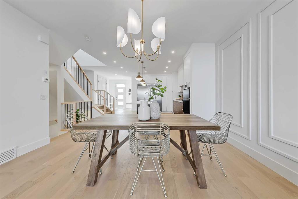 This beautifully designed semi-detached Valencia Residential home blends modern design with thoughtful functionality across three levels. From the moment you walk in, the clean lines, wide plank hardwood flooring, and designer lighting create a bright and welcoming atmosphere that carries throughout the entire home. Found in the desirable KILLARNEY, your close to parks, schools, playgrounds, and everyday amenities. The light-filled foyer opens to a versatile office space with tasteful lighting selections, perfect for working from home or creating a quiet reading area. As you move inside, the layout is bright and open, complete with curated finishes and beautiful lighting selections. The kitchen includes a large island which offers plenty of room for gathering. Quartz countertops, full height cabinetry, designer backsplash, and sleek gold hardware bring a refined look. High-end appliances and smart storage make the kitchen as practical as it is stylish. Large rear windows fill the space with light connecting the indoors to the outdoors. The dining area and living room have lovely architectural wall details as seen throughout the home. The living room also includes a gas fireplace, adding comfort to the space along with sleek tiles. At the back of the home, you will find the mudroom with bench seating and more stunning wall details. A conveniently placed power room with designer lighting finishes off this level. Upstairs, the homes bright and airy pallet carries through. At the top of the stairs, a cozy loft space can be turned into a workspace or additional living area. This floor includes three well sized bedrooms all with plenty of natural light, as well as a beautifully finished main bathroom. The primary suite is well-equipped and full of charm, with a walk-in closet and a spa inspired ensuite featuring a freestanding tub, tiled shower, and elegant selections throughout. You will also find a spacious laundry room right where it should be. The fully finished basement adds so much to the home. A large family room is designed as an entertainment hub with a built-in media wall & screen creating the perfect setting for movie or game nights. A stylish wet bar with wine display makes hosting easy. This level also includes two more bedrooms & a full bathroom, making it ideal for guests or growing families. Outside, the property includes a detached double garage and outdoor space ready for summer gatherings. Located in a desirable SW Calgary KILLARNY, nearby popular shopping & dining areas like MARDA LOOP are just minutes away, offering boutique shops, cafés, and restaurants. Families will appreciate being close to excellent local schools including RICHMOND SCHOOL and ALEXANDER FERGUSON SCHOOL, both offering strong programs and convenient access for daily routines. With quick access to major routes, downtown commuting is easy while still enjoying the charm of a quiet residential community. This is modern inner-city living designed for comfort, style, and convenience.