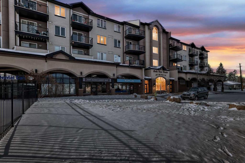 Discover elevated urban living in this bright and beautifully maintained one-bedroom corner condo at Bella Casa. Perched on the top floor, this spacious unit boasts a thoughtfully designed open-concept layout with 9-foot ceilings and an abundance of natural light throughout. The well-appointed kitchen offers generous cabinetry and a raised breakfast bar that flows seamlessly into the inviting living room, complete with a cozy electric fireplace—perfect for relaxing evenings at home. Step onto your private balcony and take in stunning panoramic views of downtown Calgary and the Rocky Mountains. The oversized primary bedroom features a convenient walk-through “His & Hers” closet leading to a full 4-piece bathroom, combining comfort and functionality. This home also includes titled underground parking, along with visitor and accessible parking for added convenience. Residents of Bella Casa enjoy access to a beautifully landscaped central courtyard with a gazebo and BBQ area—ideal for entertaining or unwinding outdoors. This pet-friendly building (with board approval) is perfectly situated near shopping, dining, and transit, offering quick and easy access to downtown Calgary. Condo fees cover all utilities except electricity, making budgeting simple. Immediate possession is available—don’t miss your chance to call Bella Casa home.