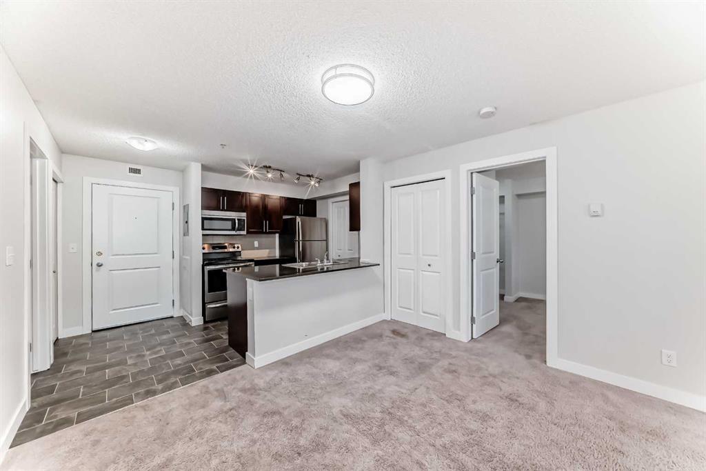 Rare opportunities like this do not come along often at Creekside Crossing. This bright and beautifully maintained three-bedroom, two-bathroom third-floor apartment offers 843 sq ft of smartly designed living space in the heart of Downtown Airdrie—an exceptional find at this price point. The open-concept living and dining area is filled with natural light, creating an inviting space perfect for relaxing or entertaining. The stylish kitchen features granite countertops, a convenient breakfast island, ample cabinetry, and a seamless connection to the main living area. The primary bedroom provides a comfortable private retreat with a walk-through closet leading to a 3-piece ensuite with a walk-in shower. Thoughtfully positioned on the opposite side of the unit, the two additional bedrooms share a spacious 4-piece bathroom—an ideal setup for families with children, guests, roommates, or a flexible home office. In-suite laundry adds everyday convenience, while the heated underground titled parking stall ensures year-round comfort and security. Condo fees include all utilities except electricity, providing excellent value and predictable monthly costs. Step outside and enjoy the convenience of downtown living with grocery stores, cafés, restaurants, pharmacies, medical services, fitness facilities, and transit all within walking distance. Parks and pathways are nearby for outdoor enjoyment, and quick access to major routes makes commuting simple. Whether you are a first-time buyer, a growing family, or an investor looking for strong value, this is a rare chance to secure a spacious three-bedroom home in one of Airdrie’s most convenient locations. Book your private showing today.