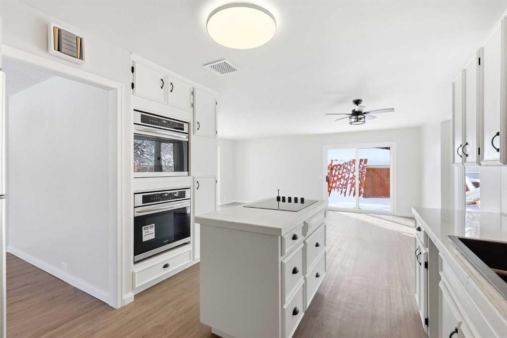 Welcome to this extensively upgraded 1,754 sq. ft. oversized bungalow in the highly sought-after community of Varsity — a move-in ready home that perfectly blends comfort, style, and location. Freshly updated with new paint, new flooring throughout, and new lighting, this home offers a bright, modern feel from the moment you step inside. The spacious living and dining area is filled with natural light from a large front window and anchored by a cozy wood-burning fireplace, creating a warm and inviting space to gather with family and friends. At the rear of the home, the thoughtfully updated kitchen features abundant counter space, ample cabinetry, and two brand new wall ovens — ideal for everyday living and effortless entertaining. The charming breakfast nook flows seamlessly into the family room, where sliding patio doors open onto a large sunny south-facing deck — perfect for summer barbecues, morning coffee, or simply relaxing in the sun. The main floor offers a generous primary bedroom with its own private 2-piece ensuite, two additional well-sized bedrooms, and a beautifully renovated 4-piece bathroom. Downstairs, the fully developed lower level expands your living space with an expansive family room featuring a second wood-burning fireplace, a 3-piece bathroom, a large laundry room with sink and new washer and dryer, and extensive storage. Three additional versatile rooms provide endless possibilities — ideal for home offices, hobby rooms, or a fitness area. Outside, the oversized double garage is a standout feature, complete with an 8’ door, heated workshop area, and full insulation and drywall — perfect for projects, storage, or year-round use. The location truly can’t be beat — just steps to scenic walking trails leading to the Dalhousie LRT, and minutes from schools, playgrounds, Market Mall, Shaganappi Village, Northland Village Mall, the University of Calgary, Foothills Medical Centre, and downtown. With its generous layout, extensive upgrades, and unbeatable location, this is a rare opportunity to own a turnkey home in one of Calgary’s most desirable neighbourhoods. Book your private showing today!