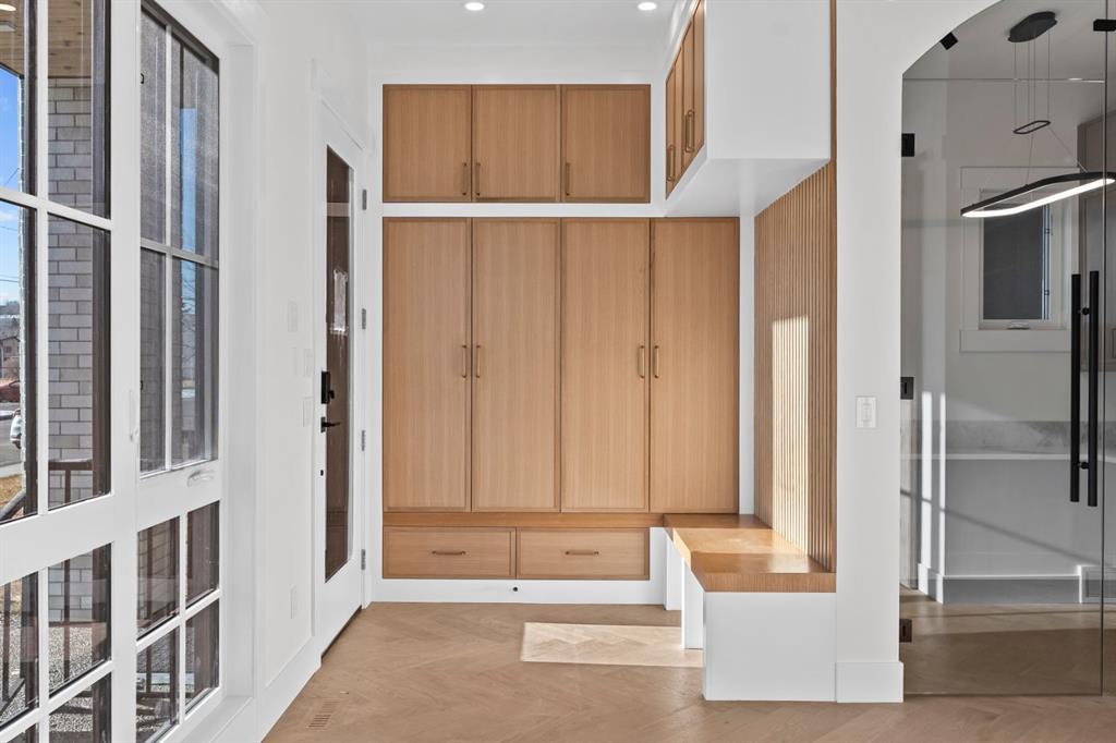 Welcome to this impeccably crafted 3-STOREY DETACHED home in the heart of Parkdale, offering OVER 3,400+ SQFT OF DEVELOPED LIVING SPACE by the reputable ACE HOMES. Featuring 5 BEDROOMS, multiple PRIVATE ENSUITES, a fully developed basement, and a DOUBLE DETACHED REAR GARAGE, this home perfectly blends luxury craftsmanship with thoughtful family functionality in one of Calgary’s most desirable inner-city communities. The main level welcomes you through a FRONT CONCRETE PORCH into a beautifully designed foyer complete with CUSTOM BUILT-INS. The front-facing dining room is complimented by OVERSIZED WINDOWS, filling the space with natural light. At the heart of the home, the chef-inspired kitchen showcases a full STAINLESS STEEL APPLIANCE PACKAGE, luxury finishes, and an impressive 15-FOOT OVERSIZED ISLAND—ideal for hosting gatherings or casual family meals. Tucked discreetly to the side, the mudroom features additional CUSTOM BUILT-IN STORAGE. The rear living room offers warmth and comfort, with large patio doors opening onto the REAR CONCRETE PATIO, creating seamless indoor-outdoor living. The second level features a primary suite , complete with a spacious WALK-IN CLOSET and a luxurious 5-PIECE ENSUITE featuring upscale finishes and a spa-inspired atmosphere. Two additional bedrooms each boast their own PRIVATE 3-PIECE ENSUITE—an exceptional feature for growing families or guests. A conveniently located laundry room completes this floor. The third level adds a unique layer of lifestyle flexibility. A spacious BONUS ROOM with WET BAR opens onto a PRIVATE BALCONY—perfect for entertaining, relaxing, or creating a dedicated lounge space. This level also features an additional bedroom with its own WALK-IN CLOSET and access to a JACK & JILL STYLE WASHROOM, along with a thoughtfully placed POCKET OFFICE, ideal for working from home without sacrificing living space. The fully developed basement extends the home’s versatility with a large REC ROOM, and WET BAR, creating the perfect setting for movie nights or hosting. A dedicated GYM area provides space for wellness at home, while a 5th bedroom and 3-PIECE BATHROOM make this level ideal for guests or extended family. Located in the highly sought-after community of Parkdale, this home offers the perfect balance of riverside tranquility and urban convenience. Enjoy easy access to the Bow River Pathway system, nearby parks, and quick connections to Crowchild Trail for seamless commuting. Minutes from the Foothills Medical Centre, Alberta Children’s Hospital, and the University of Calgary. Parkdale is known for its strong sense of community, tree-lined streets, and proximity to local cafes and boutique amenities. Whether you’re searching for a forever family home or a premium inner-city investment, this property delivers unmatched space, elevated design, and an exceptional location. ACT NOW to take advantage of PRE-COMPLETION CUSTOMIZED FINISHING OPTIONS and secure SUMMER 2026 POSSESSION.