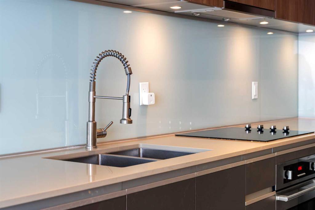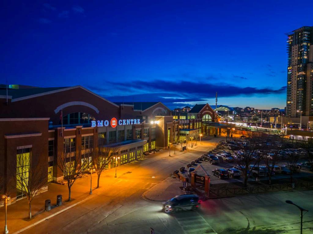 /// BEST PRICED 1 BEDROOM UNIT IN THE GUARDIAN \\\ Beautifully finished and flooded with natural light, this executive 1-bedroom condo offers refined urban living in the heart of Calgary’s ever-evolving Culture & Entertainment District. Perfectly positioned just minutes from the Bow River pathways, Stampede Grounds, Scotiabank Saddledome, the state-of-the-art BMO Convention Centre, the upcoming entertainment district, C-Train access, and some of the city’s best restaurants and nightlife. Inside, the open-concept layout is enhanced by light oak hardwood flooring and a stunning L-shaped, European-inspired kitchen. Featuring sleek Italian cabinetry, quartz countertops, a contemporary glass backsplash, stainless steel appliances, and a thoughtfully integrated center island with hidden microwave and added storage, the space is as functional as it is stylish—ideal for both everyday living and entertaining. The living room is a true retreat, highlighted by floor-to-ceiling, wall-to-wall windows that showcase sweeping views of Scotsman Hill and the Bow River Valley. Natural light pours in, creating an airy feel that exceeds the unit’s footprint. A sliding glass door opens to the oversized balcony, perfect for morning coffee at sunrise or shaded summer evenings with friends, offering seamless indoor-outdoor living. The private bedroom features a generous walk-in closet with custom organizers. Additional highlights include updated modern lighting and plumbing fixtures, a stylish 4-piece bathroom, and a spacious laundry room with stacked washer and dryer, plus extra storage and hanging space. A large, separate storage locker (approximately 3’ x 6’ x 7’) is included. Parking is available for rent at $150 + GST per month, with multiple rental opportunities typically advertised by owners within the building. The Guardian is a fully air-conditioned, professionally managed tower offering daily concierge service and unbeatable access to downtown amenities, including East Village, Eau Claire, shopping, cafés, and entertainment. With condo fees of just $365/month, this is an outstanding opportunity to invest in one of Calgary’s most exciting and rapidly growing neighborhoods—or to stop renting and step into homeownership in a premier building. Book your private showing today