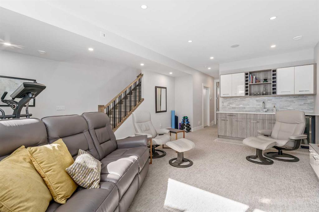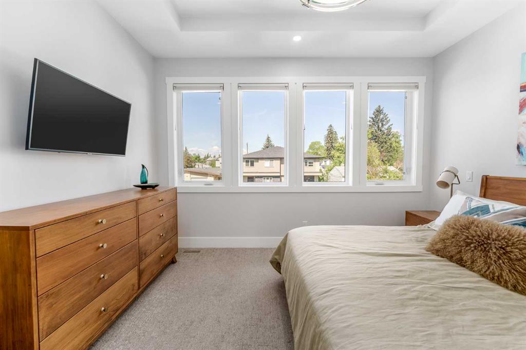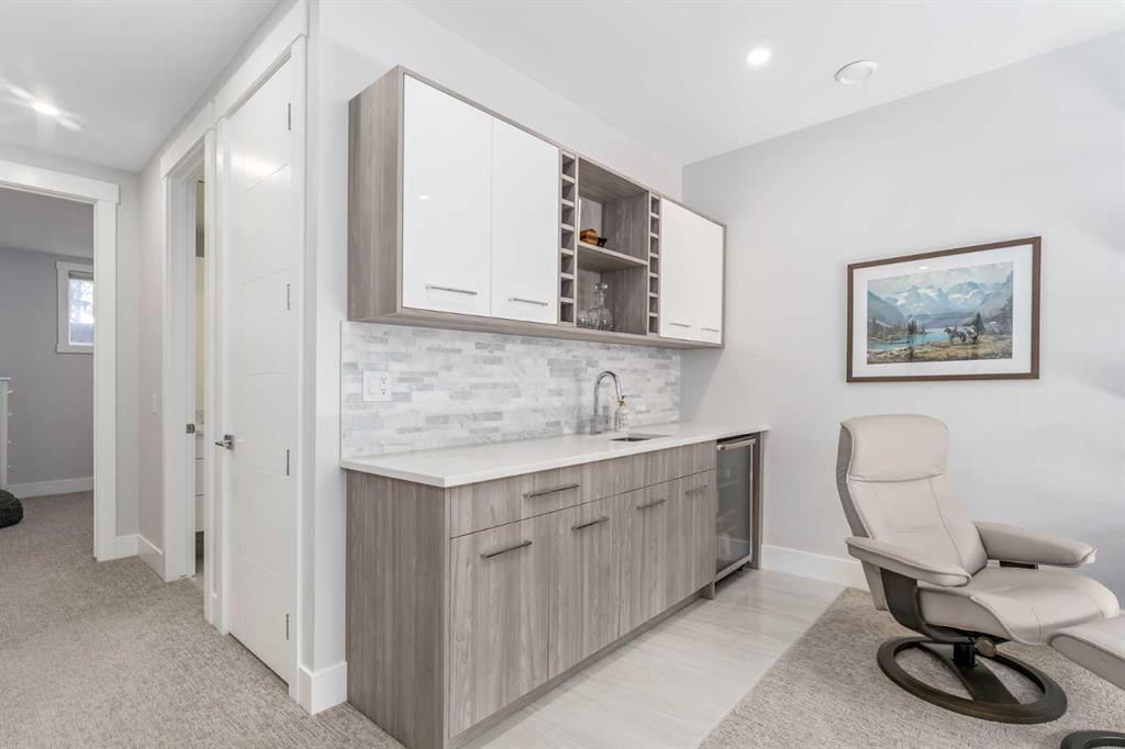 Not all infills are created equal. This modern Killarney residence stands apart with craftsmanship you can see, and construction you can feel. Bathed in natural light through oversized windows and framed by 10’ main-floor ceilings, the home balances warm engineered hardwood with a refined, contemporary palette. From the moment you step inside, the fit and finish telegraph quality: crisp lines, precise millwork, and a floor plan that moves effortlessly from everyday living to elegant entertaining. At the front, a formal dining room sets the tone, three large picture windows, a statement light fixture and room for those long, lively dinners. The heart of the home is an oversized chef’s kitchen that’s both beautiful and hard-working: white and warm wood-grain cabinetry to the bulkhead, gleaming waterfall quartz counters, built-in wall oven, a gas cooktop beneath a sleek stand-alone hood fan, and a Carrara marble herringbone backsplash that wraps the hood for a bespoke, designer finish. The generous island invites coffee catch-ups and weekend prep, while the full upgraded stainless appliance package delivers performance worthy of the space. Anchored by a tiled gas fireplace with custom open shelving, the living room is scaled for comfort and conversation. It flows naturally to the backyard for easy summer living, with over $40k in low maintenance landscaping with concrete walkways, a large patio, and BBQ gas hookup so hosting is as simple as turning a knob. Upstairs, the private retreat continues the theme of understated luxury. The primary suite features a tray ceiling, upgraded blinds, and a walk-in closet fit with custom built-ins. The spa-calibre 5-piece ensuite pampers with a freestanding soaker tub, an oversized glass shower, 24"×24" tile, in-floor heat, and a steam rough-in already planned into the layout. Two additional bedroom suites are thoughtfully finished—each with true walk-in closets and custom storage (one with a stylish wallpaper feature wall). A proper laundry room, complete with cabinetry, folding counter, and sink—keeps the day-to-day running smoothly. The fully finished basement is made for movie nights and game days. A large rec/media area includes a custom wet bar with sink, wood-grain and white cabinetry, marble tile backsplash, and a wine fridge,an entertainer’s ally. Berber carpet adds warmth underfoot, while in-floor heating keeps the entire level comfortable year-round. A sleek 3-piece bathroom with a floating vanity serves guests with style. And because true quality goes beyond finishes, this level was engineered with approximately six inches of insulation beneath the slab for superior efficiency and comfort. Set on a quiet inner-city street in the heart of Killarney—close to parks, schools, transit, and the best of local cafés and amenities—this home delivers the rare combination of design, durability, and day-to-day livability. If you value details you can feel as much as finishes you can see, you’ll know...this is the one.