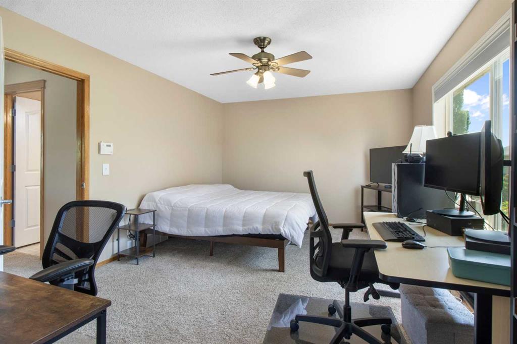Located on a desirable corner lot in Evergreen, this 2,124 sq ft home offers rare flexibility with 6 BEDROOMS and 4 full bathrooms—ideal for multigenerational households or large families. On the main floor, a bedroom and full 3pc bath offer a STAIR-FREE OPTION for aging parents or guests, with easy access to the kitchen and living areas. Upstairs, four bright bedrooms and two full baths—including a spacious primary suite with walk-in-closet and 5-piece ensuite—provide privacy and space to unwind. A dedicated HOME OFFICE and cozy bonus nook add versatility for work, study, or play. The kitchen features classic oak cabinetry and stainless steel appliances, opening to a sunny breakfast area. Downstairs, the finished basement includes a RARE 6TH BEDROOM, convenient 3pc bath, framing in place to add a seventh bedroom and a rubber-floored space perfect for a home gym or creative studio, while still having ample storage space. Enjoy summer evenings on the spacious backyard deck with gas hookup, or bring your RV through the oversized gate into the fully fenced yard. The attached double garage and large driveway offer plenty of parking and storage year-round. Steps from walking trails, top-rated schools, and Fish Creek Park, this home blends comfort, flexibility, and location in one of Calgary’s most family-friendly communities.