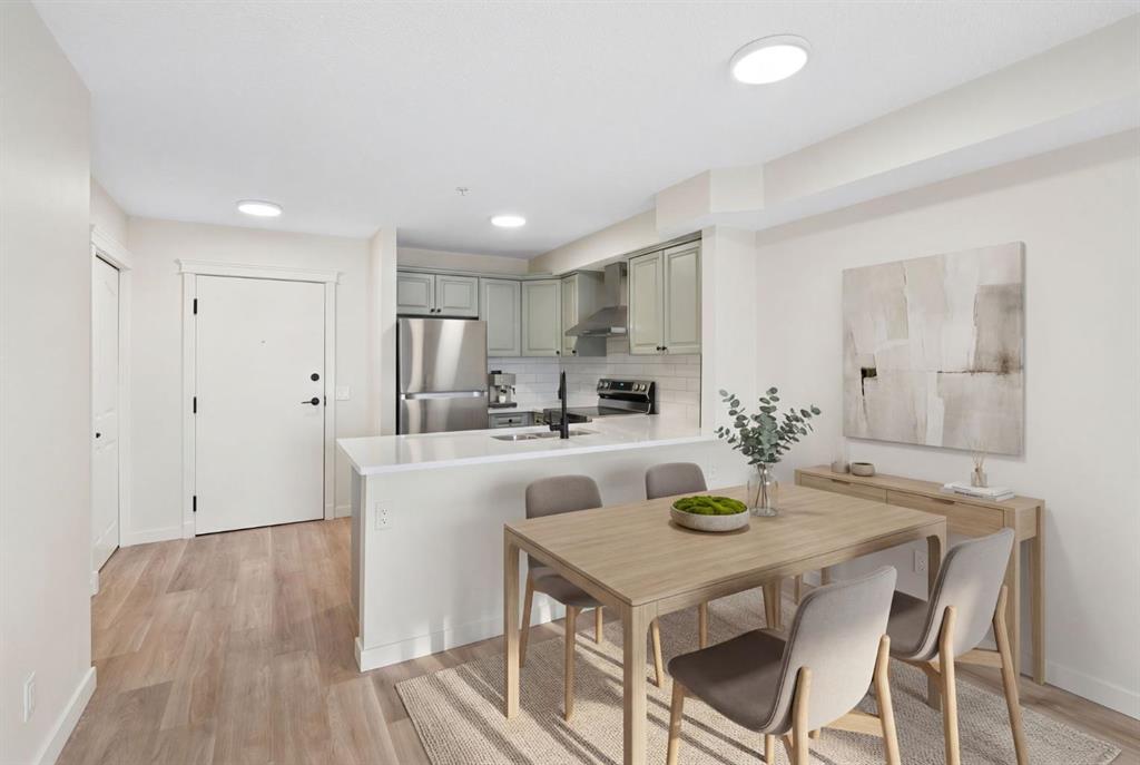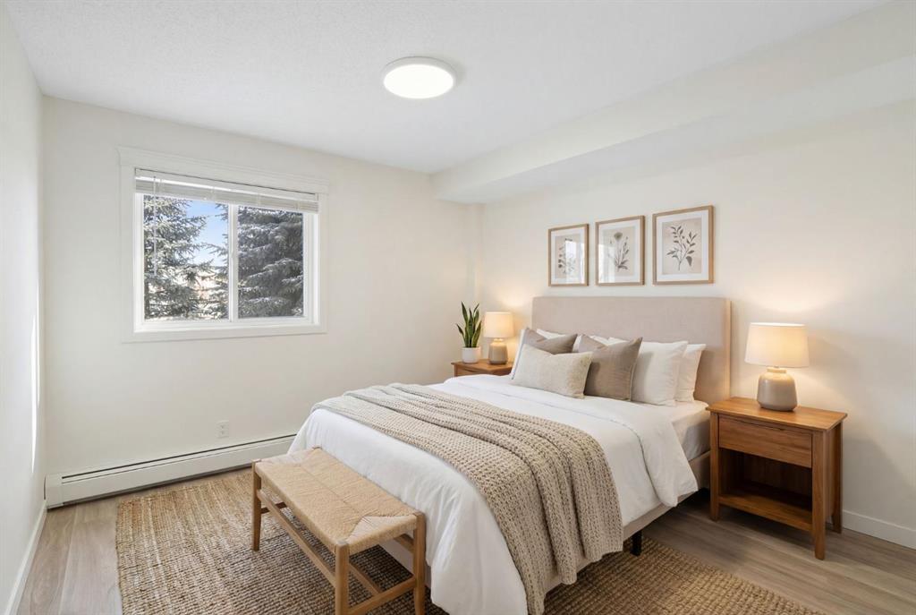 Modern, effortless, and move-in ready. Step into stylish simplicity with this beautifully refreshed 1-bedroom, 1 bathroom, + den retreat nestled in the lively community of Saddle Ridge, one of Calgary’s most convenient and fast-growing neighbourhoods. Designed for modern living, this 588 sq ft gem feels bright, open, and effortlessly inviting from the moment you walk in. Sunlight spills across brand-new luxury vinyl plank floors, while fresh designer tones and updated lighting create a warm, contemporary ambiance that instantly feels like home. Picture yourself preparing the perfect meal in the sleek, upgraded kitchen, where quartz countertops, sparkling stainless steel appliances, and ample cabinetry set the stage for everything from quick breakfasts to cozy dinner nights in. The living area flows naturally to your private balcony; a peaceful perch for morning coffee, evening unwinding, or simply soaking in the quiet views after a long day. Your primary bedroom offers comfort and calm, while the versatile den adapts to your lifestyle: home office, reading nook, fitness corner, or guest space. A refreshed 4-piece bath, in-suite laundry with brand new machines, and a titled heated underground parking stall bring everyday ease and year-round comfort. All of this is set within a secure, well-managed building that adds confidence to your investment and pride to your ownership. With shops, transit, parks, schools, and major routes just minutes away, this condo isn’t just a place to live, it’s a home.