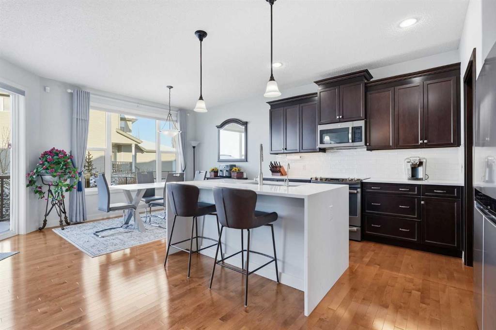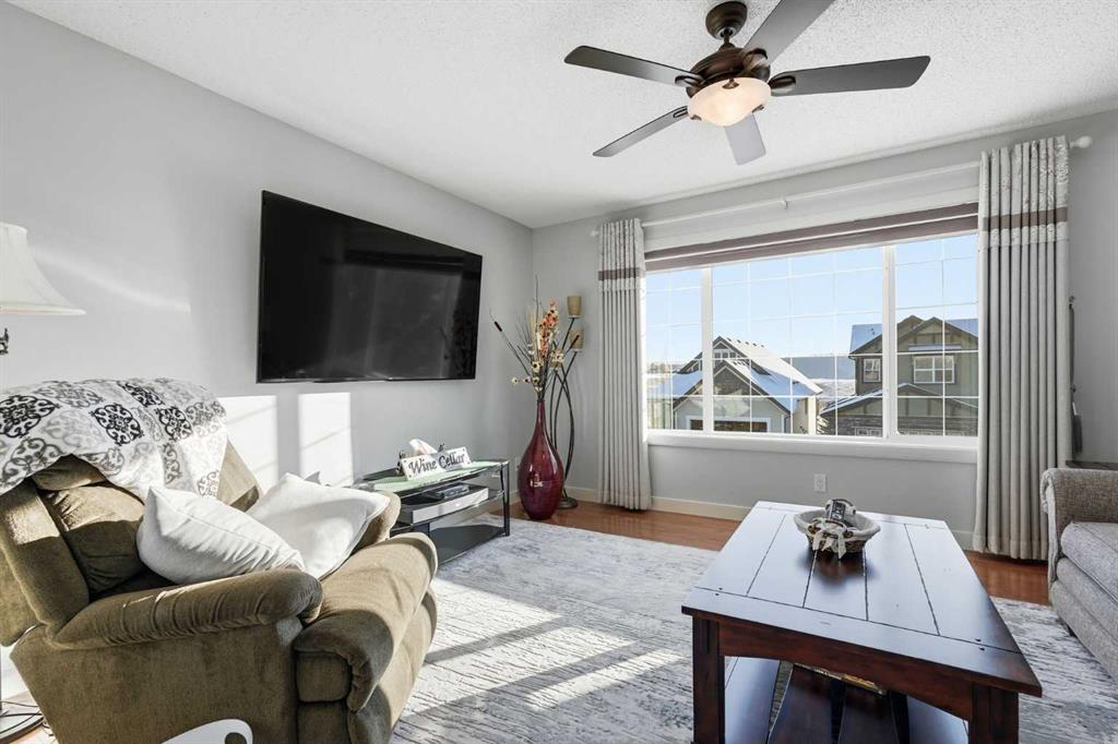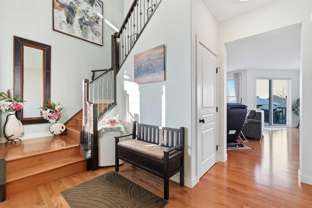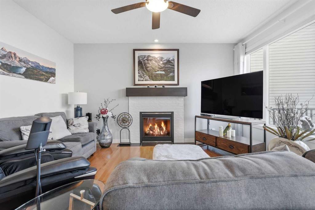 Welcome to one of the most uniquely positioned homes on the street, offering clear, unobstructed MOUNTAIN VIEWS from the backyard, dining room, primary bedroom, and even the ensuite bath. Surrounded by three green spaces, this home delivers a rare sense of privacy, openness, and connection to nature where morning coffee comes with mountain sunrises and evenings wind down under Cochrane’s painted skies. Extensively renovated and thoughtfully upgraded, the home features a 3-year-old designer kitchen with new appliances and three custom waterfall countertops, a true focal point for gathering and entertaining. Motion sensored Under-cabinet lighting, rounded drywall corners, hardwood floors on the main and upper levels, comfort, and quality throughout. Major mechanical upgrades provide peace of mind and everyday comfort, including AC, high-efficiency furnace (2021) with UV air purification system for crisp, clean air, an upgraded 60-gallon electric hot water tank, water softener, and a full home water filtration system with reverse osmosis (2013) for premium drinking water. Fireplaces have been recently cleaned and serviced. Fully wired with Telus security and surround sound speakers. Designed for both relaxation and entertaining, the home features two custom decks with a gas fire pit that capture the mountain views, along with a fully wired backyard gazebo complete with gas fireplace, TV hookup, electricity, and space to host year-round. The basement offers a wet bar, steam shower, and a versatile soundproofed entertainment area easily transformed into a theatre room, home gym, or yoga retreat. Zero-scaped landscaping ensures a low-maintenance lifestyle so you can spend more time enjoying the setting and less time maintaining it. A rare opportunity to own one of the few homes in this location with true unobstructed mountain views, thoughtful upgrades, and a lifestyle that’s hard to replicate.