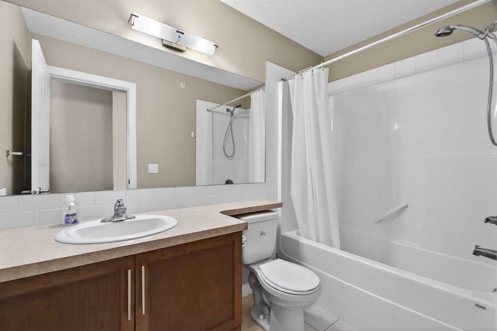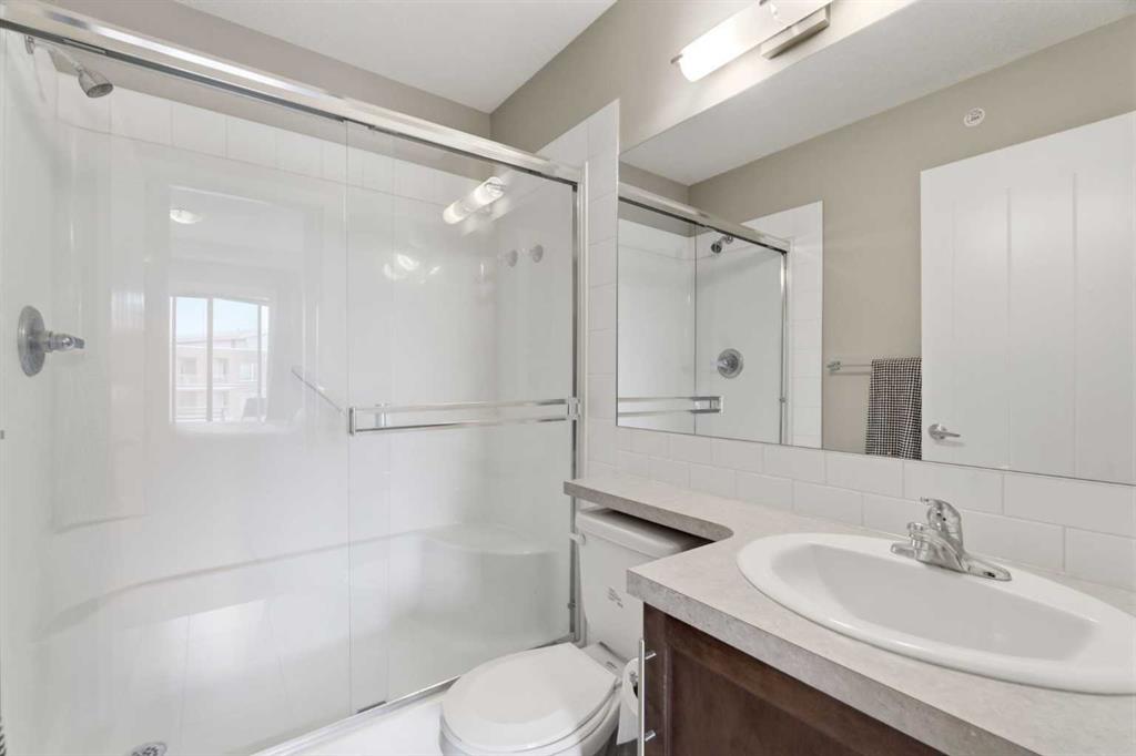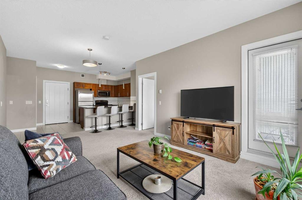 Welcome to this TOP FLOOR 2 BEDROOM + DEN, 2 FULL BATHROOM condo with TITLED UNDERGROUND PARKING in The Edge, ideally located beside EAST LAKE and GENESIS PLACE RECREATION CENTRE in Airdrie. This bright and well designed home offers an excellent floor plan with the bedrooms located on OPPOSITE SIDES OF THE UNIT, providing privacy that works well for shared living, guests, or a roommate situation. The primary bedroom features a walk through closet, private 4 piece ensuite, and direct access to the WEST FACING BALCONY. The open concept living space connects the kitchen, dining, and living room and is filled with natural light. The kitchen features granite countertops, stainless steel appliances, and ample cabinetry. The DEN offers a flexible space for a home office or additional storage and is conveniently located beside the second full bathroom. Step outside to the large WEST FACING BALCONY, accessible from both the living room and the primary bedroom, an ideal spot to enjoy afternoon sun and evening sunsets. Additional highlights include IN SUITE LAUNDRY, TITLED UNDERGROUND PARKING, and a storage unit conveniently located at the front of the parking stall. Located steps from East Lake, walking paths, green space, schools, and Genesis Place recreation centre. Residents enjoy an active lifestyle with year round recreation, fitness facilities, and beautiful outdoor space right outside the building. Shopping, restaurants, and quick access to Deerfoot Trail make commuting into Calgary convenient. With its TOP FLOOR location, smart layout, and access to East Lake and Genesis Place, this is an excellent opportunity for FIRST TIME BUYERS, DOWNSIZERS, or INVESTORS looking for a well located property in Airdrie. Book your showing today.