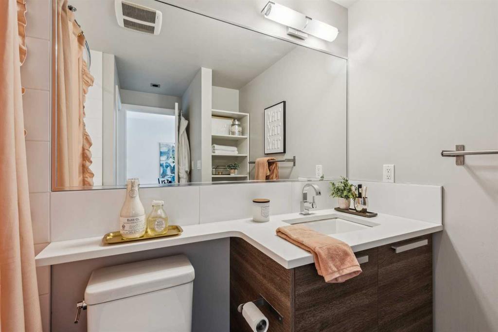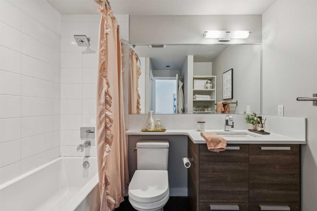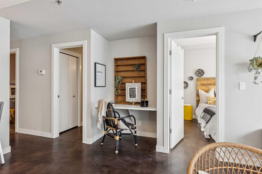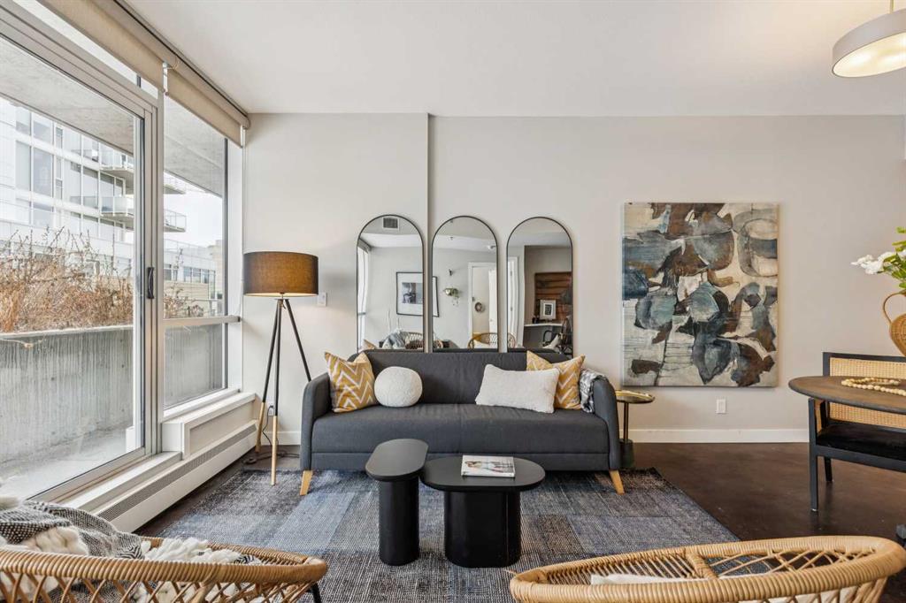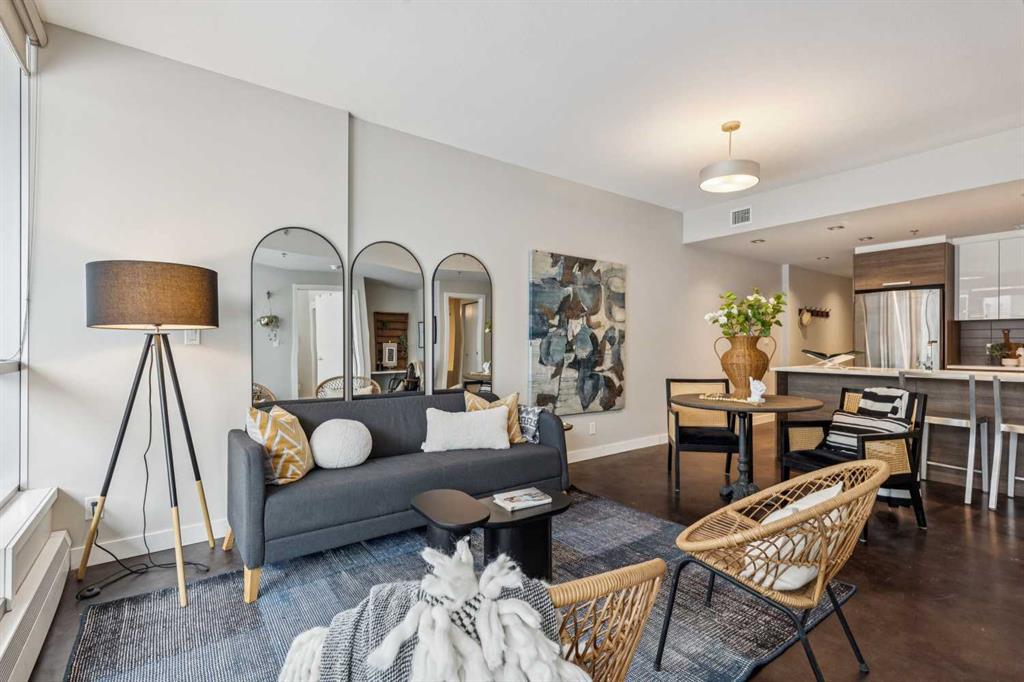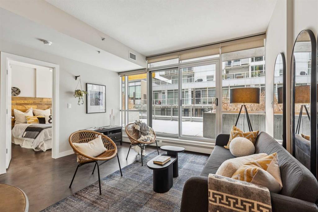 This one-bedroom plus den condo is built for those who want space, style, and convenience in one of Calgary’s most vibrant neighbourhoods. The standout feature? A massive 300-square-foot terrace—perfect for grilling, entertaining, or just unwinding with a drink in hand. Inside, the wide, open-concept living area (almost 14 feet wide!) gives this home the feel of a bungalow in the sky. 9-foot ceilings and polished concrete floors add an industrial-chic edge, while floor-to-ceiling windows flood the space with natural light. The kitchen is built for function and style, featuring wood-grain cabinets, a built-in oven, electric cooktop, and quartz countertops. Whether you’re cooking for one or hosting a dinner party, the large dining area and breakfast bar offer plenty of seating. The primary bedroom features custom closet solutions, while the main bath is both sleek and practical with a deep soaker tub, linen storage, and the convenience of an in-suite washer/dryer. The den is a versatile flex space, big enough for both a desk and a twin bed for guests. Living in Kensington means everything is at your doorstep—Orange Theory Fitness, great coffee shops, restaurants, a grocery store, and the C-Train, all just steps away. Plus, Pixel offers a rooftop patio with stunning city views, plenty of underground visitor parking, and this home includes a secure underground stall and storage unit. If you're looking for a bold, modern space with an unbeatable location, this is it.