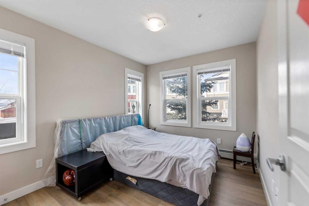 Welcome to this well-maintained 2 bedroom, 2 bathroom corner unit in the desirable Evanston Square complex! Offering 904 sq ft of thoughtfully designed living space on the 2nd floor, this bright home stands out with no neighbours on either side, providing exceptional privacy. The open-concept layout features a spacious kitchen with plenty of cabinetry and prep space that flows seamlessly into the dining and living areas—perfect for both everyday living and entertaining. Recently updated laminate flooring throughout (no carpet) adds a fresh, modern feel and easy maintenance. The generous primary bedroom includes a walk-through closet and private ensuite, while the second bedroom and full bathroom offer flexibility for guests, family, or a home office. Step outside to your private balcony complete with a BBQ gas line, ideal for summer grilling and relaxing outdoors. In-suite laundry and titled underground parking add to the comfort and convenience of this home. Ideally located close to Evanston Town Centre, schools, parks, and major routes, this move-in ready corner unit is a fantastic opportunity for first-time buyers, downsizers, or investors alike.