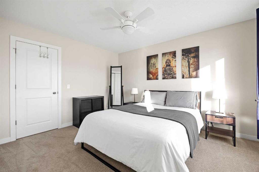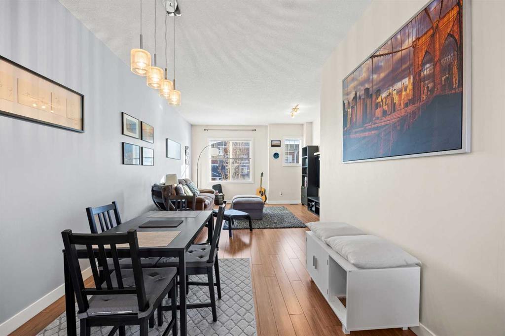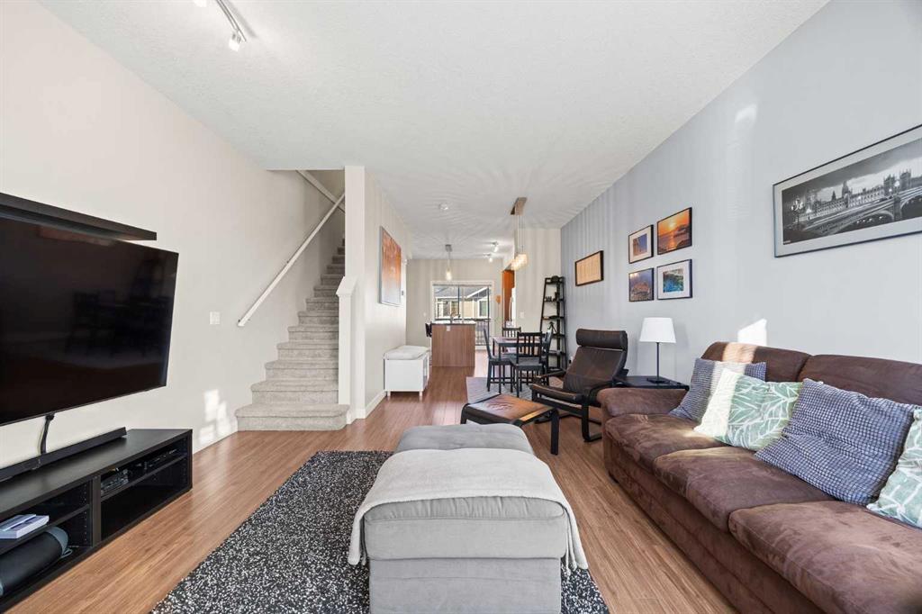DOWNTOWN CHESTERMERE LIVING + PRIVATE FENCED YARD + ATTACHED GARAGE + LOW CONDO FEES — THIS IS THE ONE YOU’VE BEEN WAITING FOR!!! Welcome home to this BRIGHT + SUNNY 2 BEDROOM, 2 BATHROOM townhome perfectly situated in the HEART of downtown Chestermere — just steps to restaurants, shops, pubs, amenities, the BEACH and of course beautiful Chestermere Lake! RARE FEATURES you will LOVE: fenced yard, SINGLE ATTACHED GARAGE, full driveway for a SECOND VEHICLE, plus additional parking directly out front — WOW!!! The entry level welcomes you with a versatile FLEX ROOM — the perfect HOME OFFICE, gym, or bonus space — complete with a convenient half bath and direct access to your attached garage. Head upstairs to a BRIGHT + OPEN main living area designed for entertaining. The modern kitchen features GRANITE COUNTERTOPS, a large island with breakfast bar seating, NEW microwave hoodfan and sliding doors leading to your private balcony — the PERFECT spot for evening BBQs (and yes, the BBQ is INCLUDED!). The dining area flows seamlessly into the sun-filled living room — ideal for hosting friends, family, or catching the big game. Upstairs you’ll find TWO SPACIOUS BEDROOMS. The primary suite easily fits a KING-SIZE BED and includes a spacious closet with built ins. The second bedroom is generously sized and perfect for guests, kids, or additional office space. The upper level is completed with a 4-piece bathroom featuring GRANITE COUNTERS + MODERN VANITY, along with a convenient laundry room with BRAND NEW washer and dryer. Fresh paint, low condo fees, unbeatable walkability, private fenced yard (some are shared), garage + driveway parking — this home checks ALL the boxes. If you’ve been waiting for the perfect place to call home at a price that DOESN’T break the bank — THIS. IS. IT.