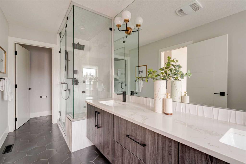 Just steps from vibrant Kensington and offering over 3,800 sq ft of custom finished living space, this exceptional 3-storey home combines luxury, functionality and an unbeatable inner-city location. Designed for comfortable everyday living and effortless entertaining, the home features 5 bedrooms, 5 bathrooms with heated floors, two steam showers, hardwood flooring throughout, two laundry rooms, two fireplaces, a convenient ELEVATOR and a striking open riser staircase. The bright main floor is ideal for hosting, centred around a chef-inspired kitchen with quartz countertops, induction cooktop, beverage fridge, extended cabinetry and a large island with seating. The spacious dining area and elegant living room with fireplace open seamlessly to the backyard, while a stylish powder room and practical mudroom complete the level. Upstairs offers two generous secondary bedrooms, a full bathroom, laundry and a beautifully appointed primary suite with walk-in closet and spa-style ensuite. The entire third floor functions as a private retreat, featuring a second primary bedroom with six-piece ensuite, walk-in closet, sunset balcony, laundry and a versatile lounge or office space with wet bar. The fully developed lower level adds excellent flexibility with a cozy family room and fireplace, wet bar, LARGE fifth bedroom and full bathroom, ideal for guests or teens. Notable upgrades include a double insulated garage with front and rear access, air conditioning, built-in closet organizers, custom blinds, built-in speakers, security system, 200-amp service and a low maintenance backyard. Exceptional access to schools, downtown, Bow River pathways, Foothills Hospital and the University of Calgary adds to the appeal of this remarkable property.