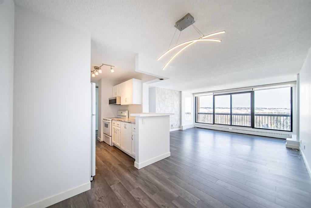 Welcome to Silverwood on the Park, an 18+ building ideally located in the heart of Bowness. This bright and beautifully maintained 2-bedroom, 1-bathroom condo offers sweeping east-facing views and an abundance of natural light throughout the day. The spacious living and dining area provides plenty of room to relax or entertain, all while enjoying the sunny exposure and open outlook. The functional kitchen offers ample cabinetry and workspace, while the updated bathroom adds a fresh, modern touch. Updated laminate flooring runs seamlessly throughout the unit, creating a clean and cohesive feel. Both bedrooms are generously sized and feature large closets, offering excellent storage and comfort. Additional conveniences include underground heated parking perfect for Calgary winters and the peace of mind that comes with well-managed condo living. Silverwood on the Park boasts fantastic amenities, including a social room for gatherings, a large fitness centre with views overlooking Bowness Park, and a relaxing dry sauna. Enjoy the perfect blend of nature and city living with parks, pathways, shopping, and transit just steps away. Whether you're a first-time buyer, downsizer, or investor, this bright and inviting condo is an exceptional opportunity in a highly desirable location.
