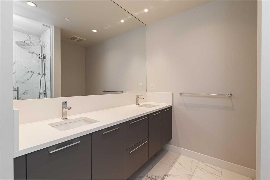 Experience an elevated urban sanctuary where luxury isn't just a finish—it’s a lifestyle. This exquisite 2-bedroom, 2-bathroom residence at Arris offers a rare opportunity to own a meticulously curated home that balances high-design aesthetics with unparalleled functional upgrades. From the moment you wake up to the glow of an East-facing sunrise over the Bow River, you’ll realize this isn't just a home; it’s your daily inspiration. The heart of this residence is a gourmet kitchen that stands in a league of its own. While other units settle for standard storage, this suite boasts an exclusive upgraded cabinet pantry and custom garbage pull-outs. Outfitted with a premium European appliance package, a 5-burner gas stove, and a professional garburator, this space is a chef’s dream. The open-concept dining and living areas are framed by massive floor-to-ceiling windows, flooding the home with natural light and offering unobstructed, cinematic views of the river. True luxury is found in the details you can feel. This home features a full-unit water filtration system, ensuring delicious tap water and a spa-like experience for soft skin and healthy hair. The primary retreat has been reimagined with a fully customized walk-in closet, providing a boutique-style organization system that maximizes every inch. Modern conveniences abound, from central air conditioning and atmospheric lighting to the future-ready inclusion of a premium upgraded EV parking spot and a designated storage locker. Life at Arris means world-class amenities are an extension of your living room. Enjoy direct, weather-protected access to over 170,000 sq. ft. of essential services, including the urban-format Real Canadian Superstore, right within the building. Combine that with a heated indoor pool, hot tub, steam and sauna rooms, and a state-of-the-art fitness centre, and you have the ultimate downtown lifestyle. This is more than a move—it’s an arrival.