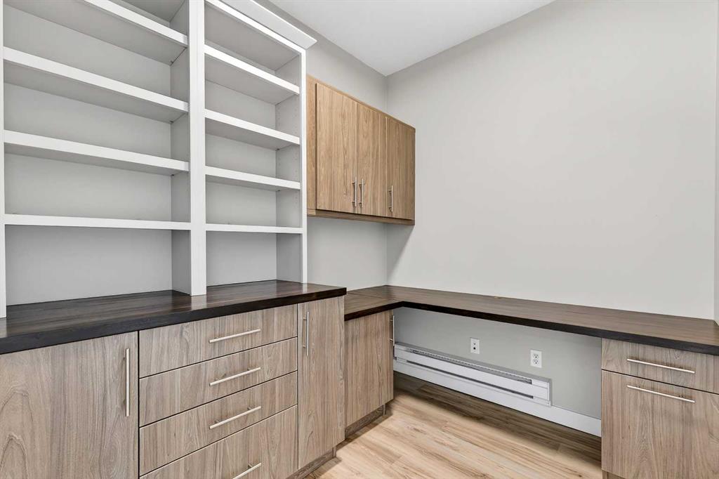 Welcome to Grande House in SoBow. STUNNING VIEWS, INCREDIBLE INNER CITY LOCATION, LUXURY LIVING in this AMENITY RICH COMPLEX. Concierge services greet you as you enter the spacious front foyer of this concrete building. Stepping into this West facing 4th floor condo, your eyes move to the unobstructed views of the city, mountains and lush green neighborhood - a picturesque backdrop to a spacious open floor plan. Espresso stained cabinetry & granite counters are offset with stainless steel appliances including a brand new fridge & dishwasher. Truly a step saving kitchen that maximizes the ample use of work space and offers the additional casual eating area at the raised eating bar. Flooded with natural light a full bank of floor to ceiling windows highlights the 9 foot ceilings and creates a spacious ambience for relaxing. A sectional will fit comfortably in the living room where you can enjoy the A/C in summer or the fireplace in the cooler days of winter. Thoughtfully planned, this unit features a sun room adjacent to the primary bedroom which opens up to the view of the mountains in the morning and the night lights of the city by evening. The four piece main bath is complete with a deep soaker tub, walk in shower, and a great sized vanity that includes doors and drawers for toiletries and towels. The functional floor plan also includes a private den/office offset from the living room, equipped with brand new custom cabinets, as well as a laundry room with a brand new stacked washer/dryer. This unit offers brand new vinyl floors and comes with an underground titled parking, along with titled storage locker. This amenity rich building includes a state of the art gym facility, a recreation room with pool tables and foosball table, a movie area complete with recliners. Inglewood’s vibrant 9th Ave showcases the inner-city lifestyle that delivers shops, boutiques, number of different restaurant & amenities, all within walking distance. Pearce Estate Park, the Bow River and the Inglewood Bird Sanctuary are your neighbors at SoBow. Call today for your private viewing! Vacant and move-in ready — don’t miss your chance to own one of the city’s best views with the convenience of inner-city living !