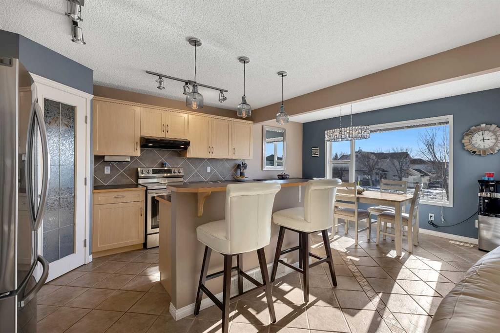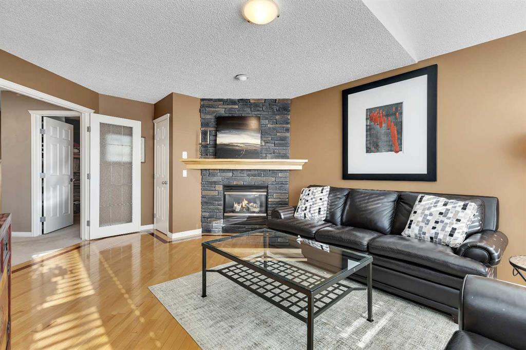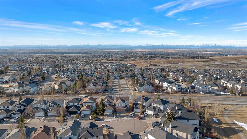 Stunning family home with spectacular mountain views in a quiet cul-de-sac location with no neighbours behind! Offering 1,909 SQFT above grade plus an additional 710 SQFT in the fully developed basement, this beautifully designed home delivers exceptional space, comfort, and lifestyle appeal. The main floor features rich hardwood flooring, a bright, functional island kitchen with a pantry, and spacious living and dining areas ideal for entertaining. A cozy main floor fireplace creates a warm focal point, while expansive windows fill the home with natural light and frame breathtaking mountain views. The west facing backyard is perfect for enjoying evening sunsets and outdoor gatherings. Upstairs features 4 generous bedrooms plus a large bonus room with its own fireplace, creating an ideal family retreat. The impressive primary suite offers vaulted ceilings, a private ensuite bath, and a spacious walk-in closet. The fully developed basement adds incredible versatility with massive windows, a third fireplace, separate thermostat control, and a convenient kitchenette with its own fridge, perfect for extended family or multi-generational living. This home offers 3 full bathrooms and 1 half bath, a rare total of 3 fireplaces, and stunning views from all levels. Ideally located close to transit and surrounded by expansive open spaces, soccer fields, and numerous nature pathways throughout the neighbourhood. Just three blocks from the community recreation area, featuring tennis courts, playgrounds, a rowing lake for summer enjoyment, and skating in the winter, creating a true year round outdoor lifestyle. A rare opportunity combining privacy, views, space, and an unbeatable family-friendly location.