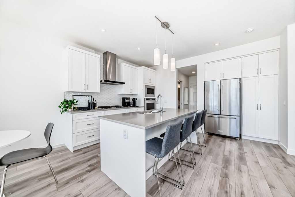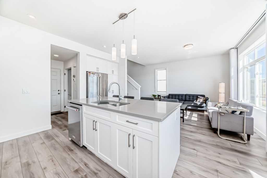 OPEN HOUSE SUNDAY, March 22, 12-1pm Welcome to Green Space View — a stunning 4-bedroom, 3.5-bath home with a walkout basement in the prestigious Aspen Springs community of Springbank Hill. Built in 2022 and still covered by the New Home Warranty, this thoughtfully designed residence offers nearly 2,000 sq. ft. of total living space and backs directly onto serene green space. Enjoy an east-facing backyard that bathes in the morning sun, creating the perfect setting for coffee on the deck and peaceful starts to your day. The main floor boasts 9 ft ceilings, an elegant white interior palette, luxury vinyl plank flooring, and an open-concept layout ideal for both daily living and entertaining. The gourmet kitchen features crisp white cabinetry, quartz countertops, tiled backsplash, high-end stainless steel appliances including gas cooktop, built-in oven and microwave, extra-wide refrigerator, and a large central island. The bright dining area opens to the upper deck through patio doors, while the spacious living room offers plenty of natural light. A mudroom and 2 pc powder room complete the main level. Upstairs, you’ll find three generously sized bedrooms, a 4-piece main bath, and a convenient laundry room. The serene primary suite is a true retreat, featuring a luxurious 5 pc ensuite with dual sinks, a soaker tub, separate glass shower, and a large walk-in closet. The fully finished walkout basement adds incredible versatility, with a large family/recreation room, a fourth bedroom, and a 3 pc bath, perfect for guests, as a home office or the teenager that wants their privacy. Step outside to your private covered patio and enjoy direct access to the walking path and green space beyond. Attached front drive double garage.. Enjoy the convenience of walking to Aspen Landing Shopping Centre, top tier schools including Rundle College, Webber Academy, and Ambrose University - all within 2.5 km! Dining options just steps away within the complex. Easy access to Westside Rec Centre, multiple golf courses, and nearby country clubs enhances your active lifestyle. Elegant, modern, and move-in ready, this exceptional townhome truly offers the best of low-maintenance luxury living with nature at your back door and amenities just minutes away.