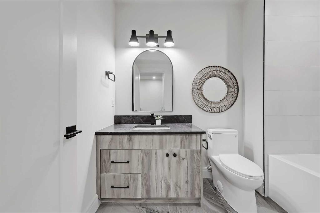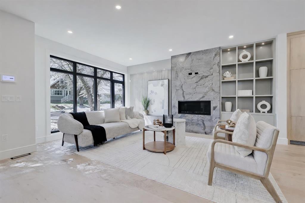 Tile detailing, modern finishes, designer lighting package, upgraded German-made KULU windows & doors…it’s everything you’re looking for in a luxury 3-STOREY SEMI-DETACHED INFILL! This designer home is located just off 26th Ave in the heart of Killarney – the ideal location for your new family home! The main floor opens into a welcoming foyer w/ built-in closet & bench, offering views into the spacious living room w/ a gas fireplace w/ full-height tile, as well as a stunning wood-panelled feature wall. Beautiful oak hardwood flooring leads you into the open-concept kitchen – fully equipped w/ an oversized island w/ quartz countertop, timeless shaker-style cabinetry w/ numerous lower drawers, & a contemporary flat-panel built-in cabinetry pantry. The designer kitchen is nicely finished w/ a full stainless steel appliance package, complete w/ a panelled French door refrigerator, a Dacor double wall oven, a gas cooktop w/ pot filler, & a built-in dishwasher. The custom built-ins continue into the dedicated dining room, w/ open shelving & lower cabinets w/ quartz counter for everyday convenience. Step out onto the back deck through the rear mudroom, complete w/ a built-in bench, coat cabinet, & tile flooring. Before you head upstairs, the stylish powder room is tucked away w/ a beautiful skirted vanity & vessel sink. Up the bright stairwell w/ glass wall awaits the primary suite – as sleek & modern as the rest of the home, w/ oversized windows, a private balcony w/ KULU door, & an extra-large walk-in closet! The chic ensuite features a dual vanity w/ a quartz countertop & a bank of lower drawers, a freestanding soaker tub, & a stand-up shower w/ full glass walls, rain showerhead, & bench. Two secondary bedrooms share the main 4-pc bath & the laundry room features a sink, upper cabinetry, hanging rod, tile backsplash, & a folding counter. A luxury home isn’t complete without a THIRD FLOOR LOFT, & this space has not been overlooked. More oversized windows bring in lots of natural light, shining across a spacious rec area w/ gas fireplace, full wet bar w/ extended quartz countertop, bar sink, & statement open shelving. A lovely sitting area w/ built-in desk overlooks the COVERED BALCONY & of course, there’s a full bath w/ fully tiled shower, too. The living space continues into the basement, w/ a full wet bar w/ quartz island, dual basin sink, & a designer tile floor, w/ a large family room, built-in media centre, a glass walled home gym w/ sports flooring, a 4th bedroom, & a full 4-pc bath. Killarney offers the perfect balance of community & convenience. From here, you’re within walking distance to Glendale School, Killarney School, & Bishop Carroll High. Westbrook Mall & the CTrain are only 5 minutes away, making downtown access effortless. The Killarney Aquatic & Recreation Centre, Optimist Athletic Park, & Shaganappi Golf Course are all nearby. *Home not started please visit show suite at 2838 34 Street SW*