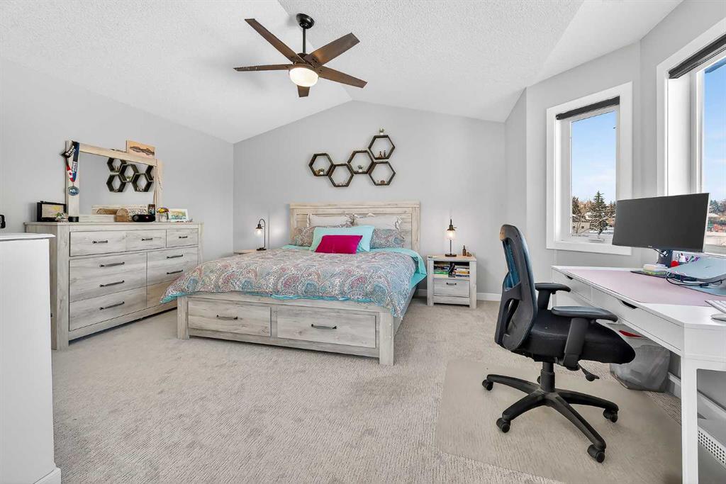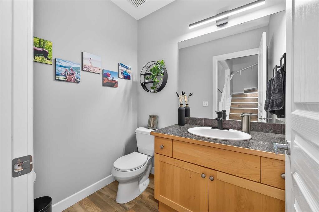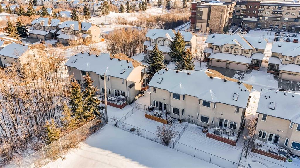 32 Prominence Park SW. Backing directly onto a large green space in desirable Patterson, this meticulously maintained and tastefully updated 3-bedroom, 3.5-bath home offers over 2,100sq ft of fully finished living space and an attached double car garage. The bright open-concept main floor features new luxury vinyl plank flooring and a spacious living room anchored by a cozy corner gas fireplace. The dining area flows seamlessly into the well-appointed kitchen complete with ample counter space, breakfast bar, stainless steel appliances, and brand-new high-end fridge and dishwasher. Expansive rear windows span the back of the home, flooding the space with natural light and showcasing peaceful green space views. A convenient 2-piece powder room and direct access to the garage complete the main level. Upstairs, brand-new carpet adds warmth throughout. The king-sized primary retreat overlooks the green space and features a large walk-in closet with custom organizers and a generous ensuite with soaker tub and custom tiled shower. Two additional bedrooms (both with custom closet organizers), a full 4-piece bathroom, and upper-level laundry with brand-new LG washer and dryer offer exceptional functionality for family living or work-from-home flexibility. The fully finished lower level provides a versatile recreation space along with a 3-piece bathroom — perfect for guests, a gym, media room, or play area. Step outside to your spacious deck and private backyard oasis, beautifully landscaped with low-maintenance perennials, in-ground sprinklers — ideal for entertaining, children, or pets. Located in a small, quiet complex with a private road, this home offers tranquility while remaining just minutes to downtown, nearby shops, restaurants, playgrounds, and quick access to Old Banff Coach Road for easy mountain getaways. Extensive recent upgrades include: New furnace, hot water tank, roof, skylights, attic insulation, luxury vinyl plank flooring, paint, bathroom exhaust fans, light fixtures, faucets, fridge, dishwasher, washer, dryer and ceiling fans. The total turnkey package at an attractive price in a sought after location!