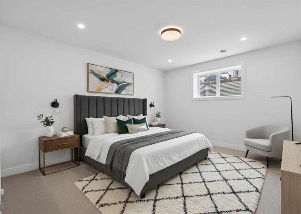 NEW BUILD!! CORNER LOT!! HUGE LOT(7857 SQFT)!! HIGH-PITCH BUNGALOW!! DOUBLE TANDEM ATTACHED GARAGE!! 3000+ SQFT OF LIVING AREA!! 4 BED 3 BATHS!! FULL OF CUSTOMIZED UPGRADES!! GYM IN BASEMENT!! 10’ MAIN FLOOR & 9’ BASEMENT CEILINGS!! This stunning brand-new bungalow delivers a rare combination of luxury, craftsmanship, and thoughtful design—loaded with custom finishes, premium selections, and tons of potlights throughout. Step onto the main level with engineered hardwood flooring. The chef-inspired kitchen features CUSTOM CABINETS TO THE CEILING, an oversized island, under-cabinet LED strip lighting, 3CM quartz countertops, butler’s pantry, and a full stainless steel appliance package. Built-in detailing and elevated selections make this kitchen feel truly high-end. The living room centers around a 42" gas fireplace. The dining area opens directly to the backyard deck. The main floor includes 2 bedrooms, including a stunning PRIMARY Bedroom with a WALK-IN CLOSET & a luxury 5PC ENSUITE featuring a custom-tiled master shower with bench & rain shower. A stylish 3PC bathroom, main-floor laundry, 8’ interior doors, and all-MDF closets complete this elevated level. Heading to the basement , it has 2 more bedrooms, both with walk-in closets — one offering direct access to a 3PC bath. A private office, a GYM with rubber flooring, and a massive rec room with a wet bar make this level an entertainer’s paradise. Speaker & WiFi booster rough-ins add modern convenience. Outside, enjoy a DOUBLE TANDEM ATTACHED GARAGE paired with an EXPOSED AGGREGATE DRIVEWAY, elevating the curb appeal. A truly one-of-a-kind bungalow—bright, open, custom-finished, and crafted for luxury living!