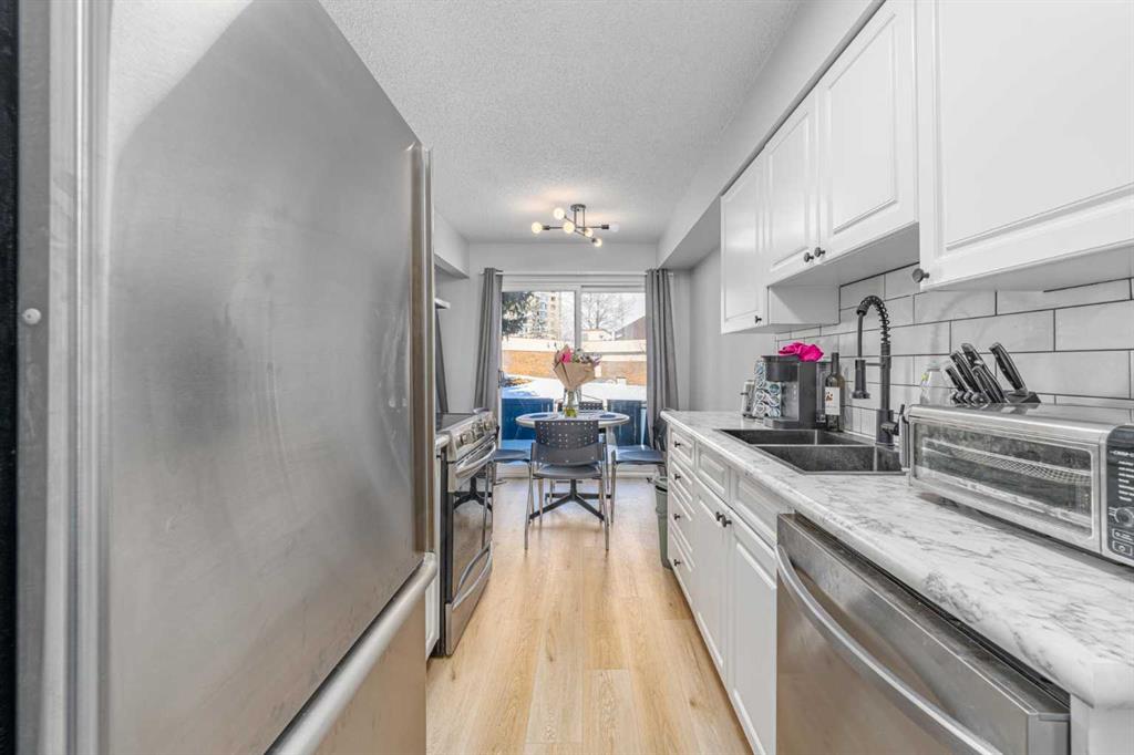 Welcome to Varsity Estate Village - a well-located CORNER TOWNHOME offering rare space and flexibility with 4 BEDROOMS and 2.5 BATHROOMS in one of NW Calgary’s most connected communities. The main level was refreshed in 2024 and features UPDATED FLOORING, PAINT, TRIM, and LIGHTING, plus an updated KITCHEN with STAINLESS STEEL APPLIANCES, modern finishes, and great workspace. The inviting living room is anchored by a cozy WOOD-BURNING FIREPLACE, creating a warm focal point for everyday living. Upstairs you’ll find two comfortable bedrooms and a full bathroom. The BASEMENT has been thoughtfully reconfigured to maximize functionality, offering TWO ADDITIONAL BEDROOMS, a FULL BATHROOM with stand-up shower, and a separate REC AREA - ideal for guests, kids, home office space, or multi-generational living. Major peace of mind comes with a NEW FURNACE and HOT WATER TANK. Enjoy a BACKYARD space, ONE ASSIGNED PARKING STALL, and an unbeatable location - WALK TO DALHOUSIE LRT, close to the University of Calgary, major hospitals, parks, pathways, and shopping. A rare opportunity to own a spacious, move-in ready townhome in Varsity. Please note basement windows do not meet current egress requirements.