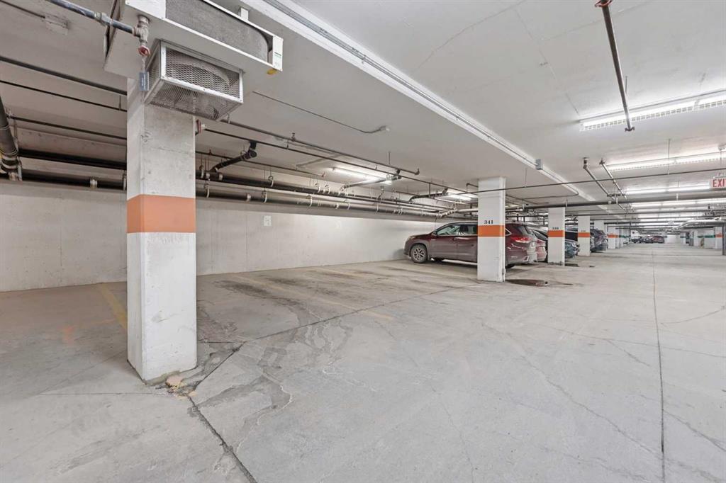 Perched on an upper floor in the highly sought-after community of Varsity Estates, this modern 1 bedroom plus den condo offers an open-concept layout in a CONCRETE BUILDING, providing excellent soundproofing and long-term durability. The space is enhanced by impressive 10-FOOT CEILINGS and FLOOR-TO-CEILING WINDOWS, allowing natural light to fill the home throughout the day. The spacious kitchen is designed for both everyday living and entertaining, featuring QUARTZ COUNTERTOPS, FULL-HEIGHT CABINETRY, STAINLESS STEEL APPLIANCES, and a generous breakfast bar that flows seamlessly into the living and dining areas. A versatile den with a pocket door provides the perfect HOME OFFICE or flex space for today’s lifestyle. The primary bedroom includes a walk-through closet with custom organizers and access to a spa-inspired bathroom complete with an OVERSIZED GLASS SHOWER and built-in bench. Comfort is elevated with CENTRAL AIR CONDITIONING, IN-SUITE LAUNDRY, TITLED UNDERGROUND PARKING, and an ASSIGNED STORAGE LOCKER. Residents also enjoy access to exceptional rooftop amenities, including a ROOFTOP FITNESS CENTER, STEAM ROOMS, OWNER’S LOUNGE, and an outdoor terrace with BBQs and mountain views. The location is incredibly convenient — just steps to cafes, restaurants, shops, and everyday amenities, with DALHOUSIE LRT, UNIVERSITY OF CALGARY, and MARKET MALL nearby. An excellent opportunity for first-time buyers, professionals, investors, or those looking to downsize without compromise while owning in a well-built concrete building in one of Calgary’s most desirable communities.