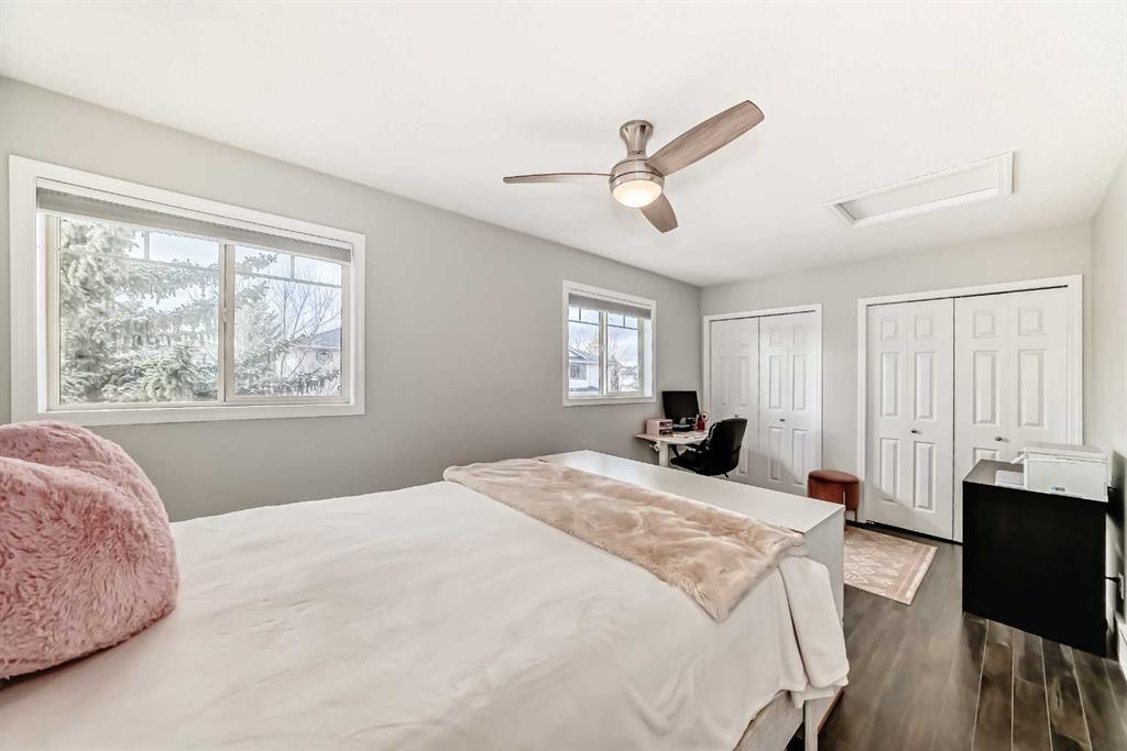 Welcome home, to this bright, spacious and upgraded townhome in one of the most desirable neighbourhoods in Calgary " Country Hills". With 1,582 + square feet of living space, this home is perfect for a growing family, or for young professionals looking for their first home. Upon entering this fine residence you will notice a generous size foyer, with access to your fully drywalled attached garage. Step up the stairs into the living room and you will be impressed by the soaring ceilings, cozy corner gas fireplace, and access to the balcony backing onto green space with views. As you walk up to the next level, you will see a bright and sunny gourmet kitchen with white cabinetry, island., full appliance package and large dining area positioned next to the sunny window. Also on this level you will find the laundry area and private half bathroom. As you head to the upper level, you will find two large primary bedrooms, one with a walk-in closet and the other with his and hers closets, a large full bathroom with pocket door dividing the toilet and bathtub/shower from the sink area. The lower level features a walk-out basement and the room is currently used as a bedroom, and you will also find a a full bathroom featuring a new vanity, toilet and floor tiles, there is also plenty of extra storage space. Walk out to a green space with beautiful trees and more scenic views. Close to schools, parks, soccer fields, shopping and all amenities. Great access to Deerfoot Trail, 14th Street, and close to the Calgary International Airport. This is a well managed, pet friendly complex. Call today to see this lovely home and make it yours! Please note the following updates/upgrades: 2020 : Furnace and hot water tank , 2022: All interior lights, CO and smoke alarms, paint (interior), Blinds and shades, Wyze door bell camera, and Nest thermostat, 2023: LG washer, dryer and fridge, 2024: garage opener and the condo board replaced the wood flooring and railings on the balcony in 2024, and window meshes, shingles and siding (2025). Basement bathroom tiles (floor), toilet, and vanity replaced 2025.